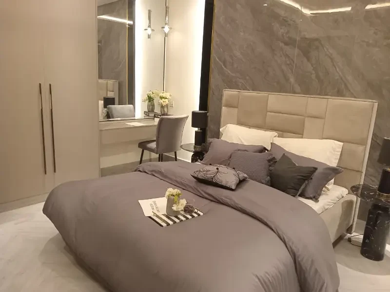 The project features an infinity pool, health bar, double-height lobby, 24/7 concierge services, restaurant, business center, children’s play area, fully equipped gym, spa, and dedicated service facilities. Additional conveniences include 3 basement-level car parking with drivers’ lounge, car charging stations, stackable mechanical parking, carwash services, garbage chutes on every floor, and uninterrupted electricity backup, making this a premium and opulent choice for modern urban living in Lahore.