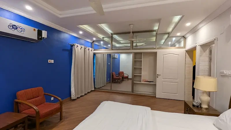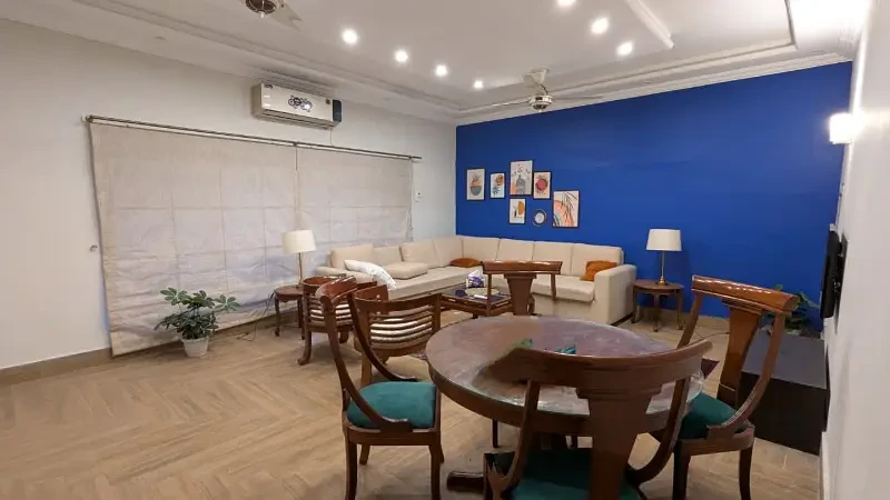 This luxury furnished ground portion in F-7/4 Islamabad offers a comfortable and private living environment. The portion features elegant interiors with a drawing and dining area, a modern kitchen, and attached bathrooms, making it ideal for a small family or professionals.