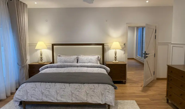 A beautifully maintained fully furnished triple-storey house is available for rent, offering a spacious and comfortable living environment. The property features 5 bedrooms with attached bathrooms, elegant drawing and lounge areas, a functional kitchen, servant quarter, and a well-kept lawn, making it suitable for large families or corporate use.
