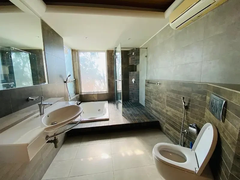 Additional amenities include a servant quarter, basement, terrace, lush green lawn, and parking for 4 cars on a secure dead-end street. The property is recently renovated with all new furnishings, fittings, and fixtures, and comes with a solar system installed