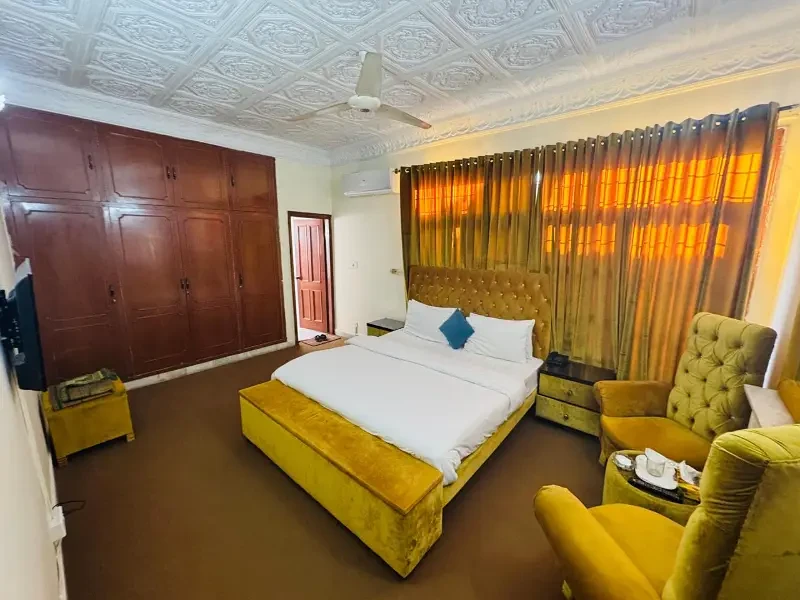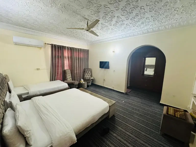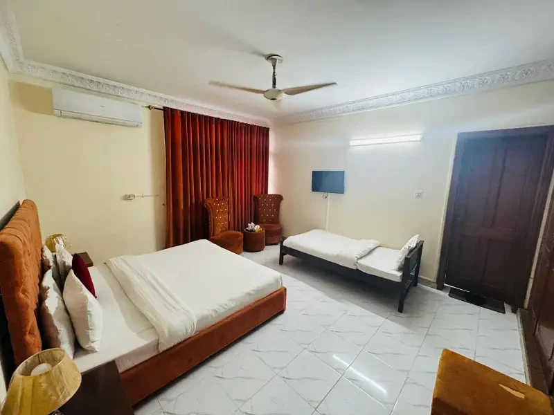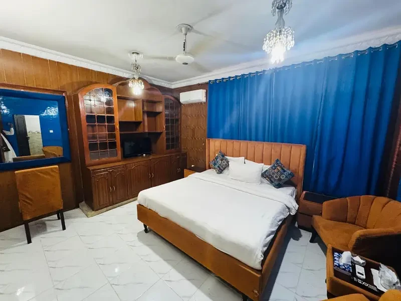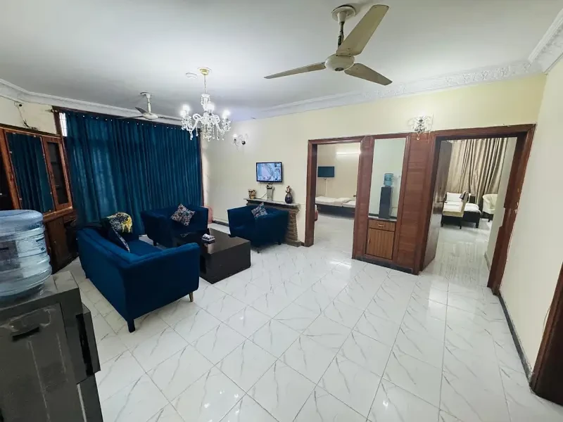 A spacious and fully furnished double-story house is available for rent in F-8/4, Islamabad, at Rs 8.50 Lac per month. This large property sits on 700 square yards and is ideal for families seeking comfort and luxury. The house features 10 bedrooms with attached bathrooms, a well-designed open sitting area, 1 kitchen, 2 servant rooms, a rooftop and front terrace, and a front lawn. The interior includes tile flooring and a water boring system.