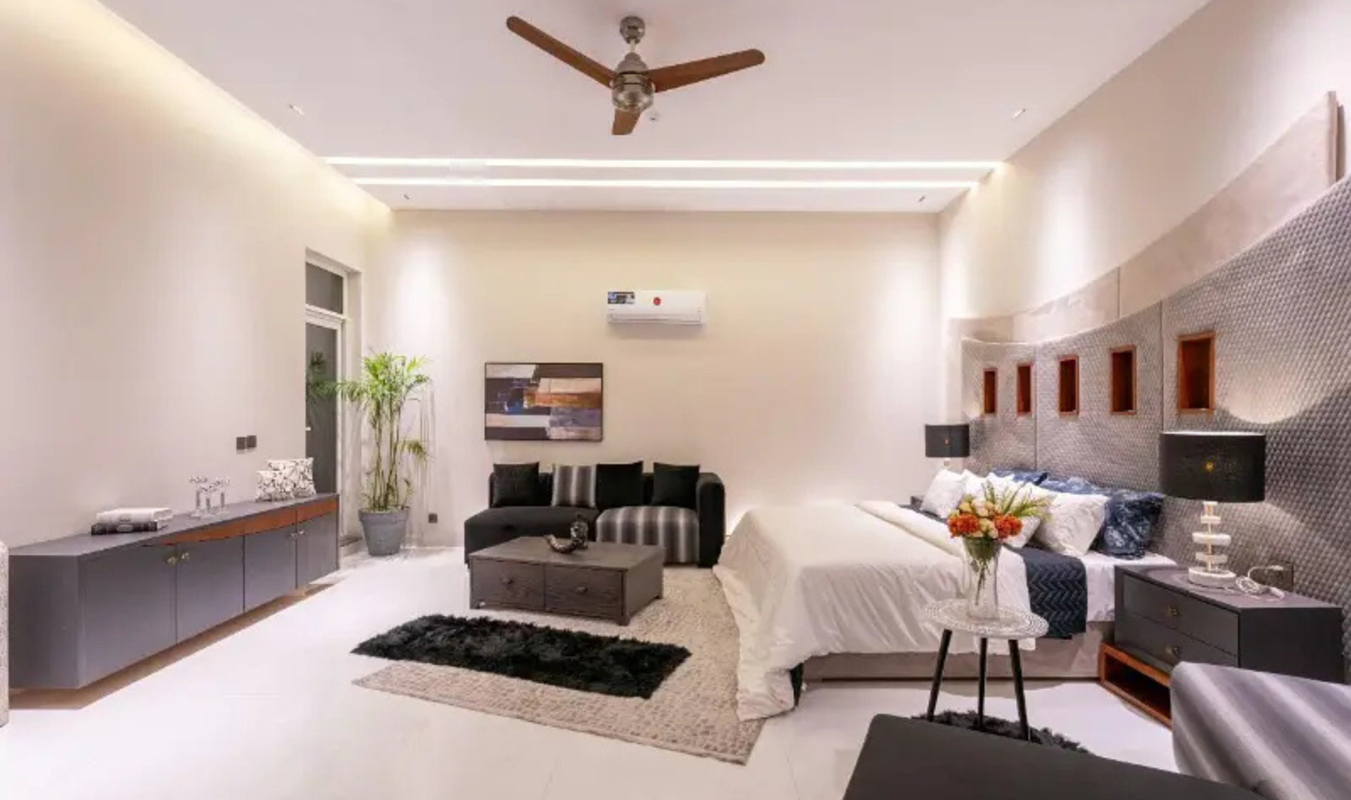 This elegant 2-Kanal fully furnished house is available for rent and offers a premium living experience. The property features six master-size bedrooms with attached bathrooms fitted with imported accessories. Beautiful woodwork, modern kitchen design, spacious TV lounge, prayer room, and store room enhance the comfort and functionality of the home. Complete marble, tiled, and wooden flooring adds a luxurious touch, while UPS and generator wiring ensures uninterrupted power support.