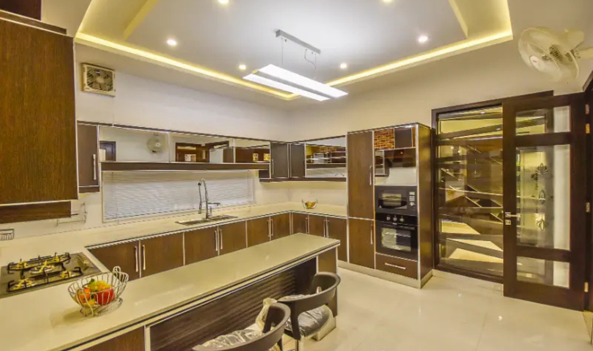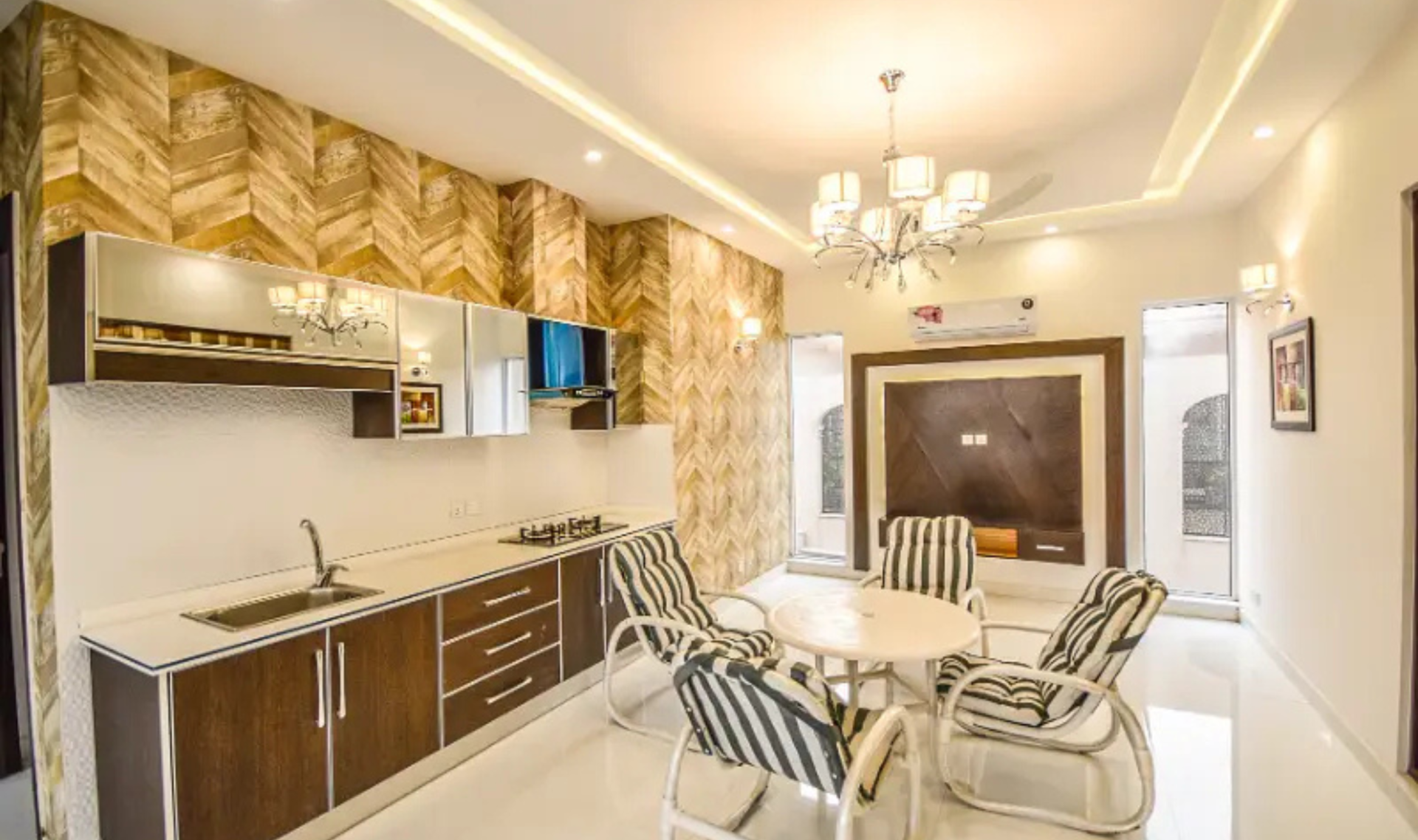 This beautifully designed villa offers 4 bedrooms with attached bathrooms, a spacious TV lounge, drawing and dining areas, and a modern kitchen with solid cabinets. High-quality tile and wooden flooring, stylish fittings, and a powder room add to the elegance of the house.