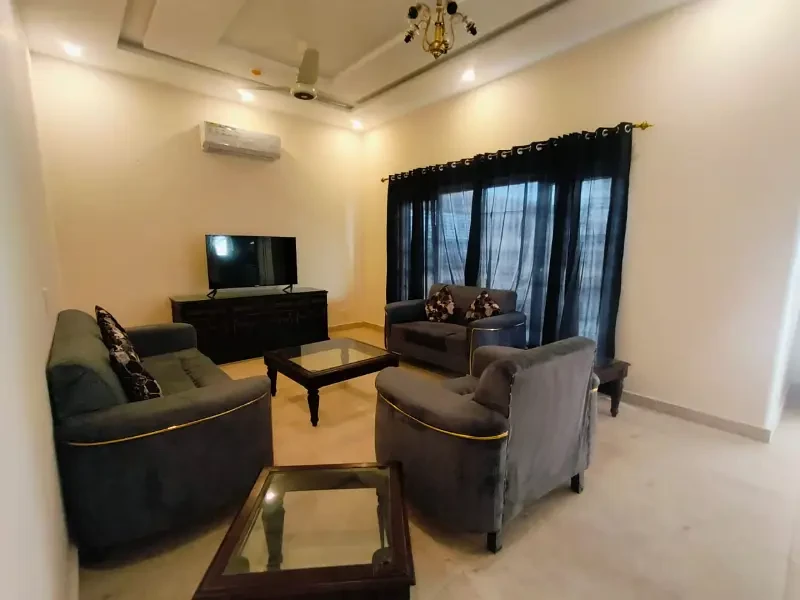 A brand new, fully furnished, and independent bungalow is available for rent in DHA Phase 7, Lahore. Perfect for families, this luxurious home offers short-term and long-term stay options. The house is beautifully designed with modern interiors, spacious rooms, and premium amenities — ideal for a comfortable and peaceful family living experience.