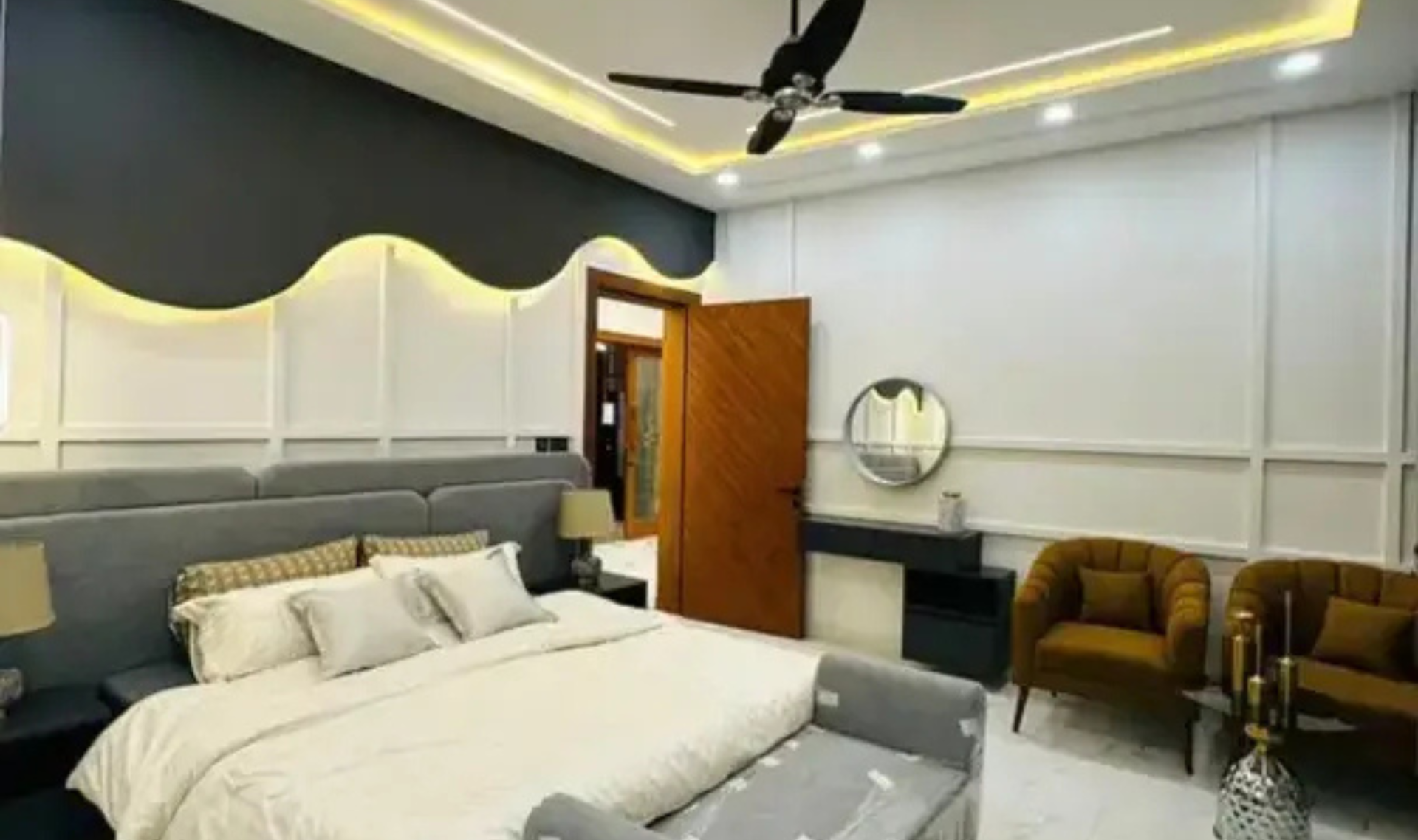 his 5 Marla brand new fully furnished house offers 3 spacious bedrooms with attached bathrooms, a stylish TV lounge, drawing and dining area, and a modern kitchen with quality fittings. The house is designed for a comfortable and luxurious lifestyle with elegant interiors and proper ventilation.
