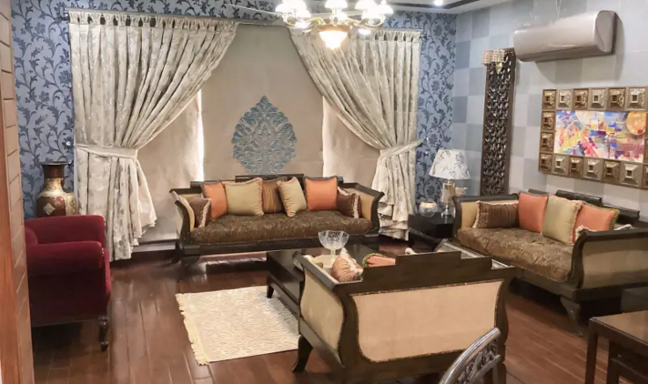 This fully furnished luxury house offers a modern Spanish-style design with top-quality materials and elegant interior detailing. The property features spacious living areas, stylish finishes, and premium fittings that create a comfortable and high-end lifestyle experience. The double height lobby enhances the beauty of the interior and gives a grand entrance feel.