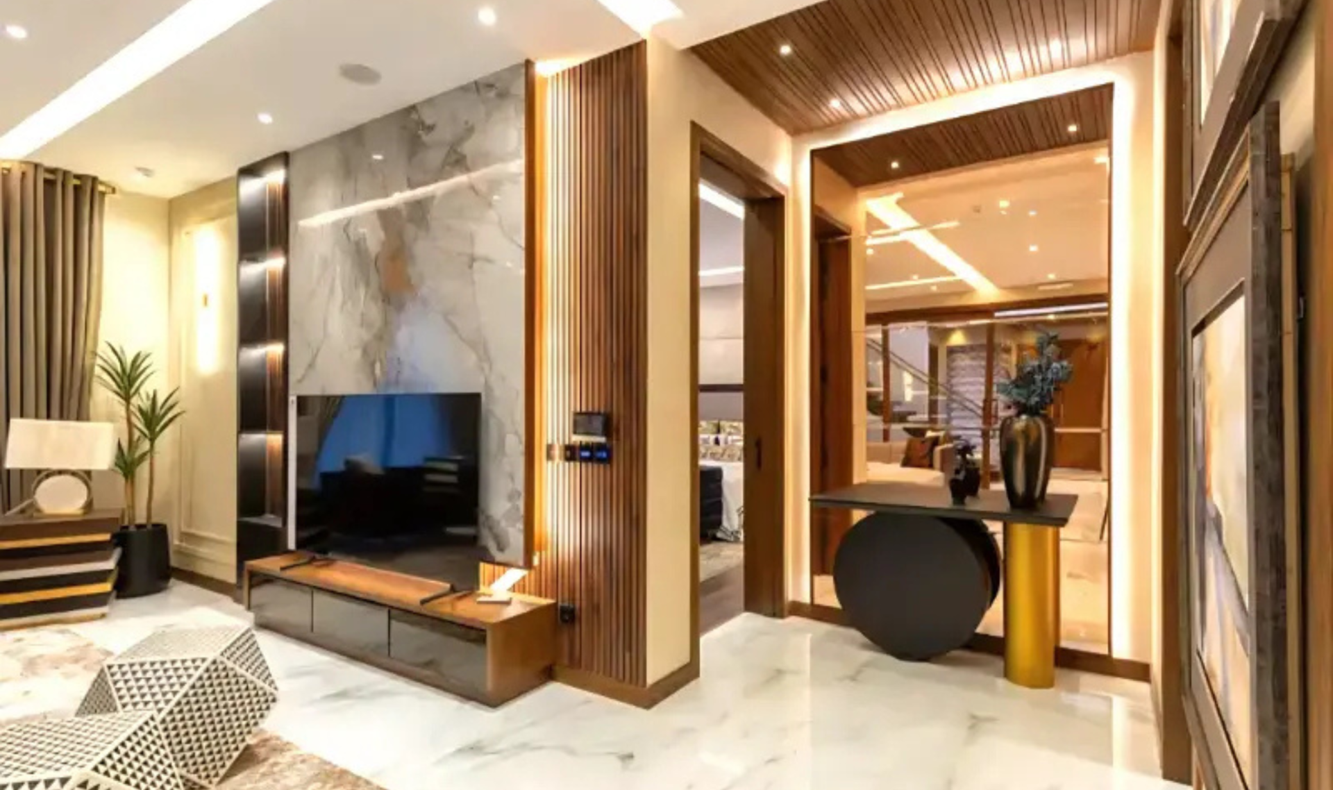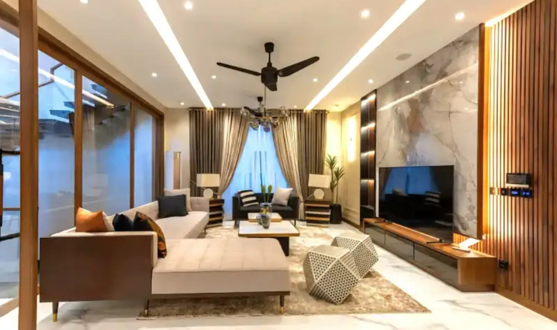 This 5 Marla fully furnished luxury house offers 3 spacious bedrooms with attached bathrooms, a stylish TV lounge, drawing and dining area, and a modern kitchen with quality fittings. The house is designed to provide a comfortable and elegant living experience with proper ventilation and natural light.