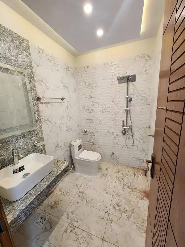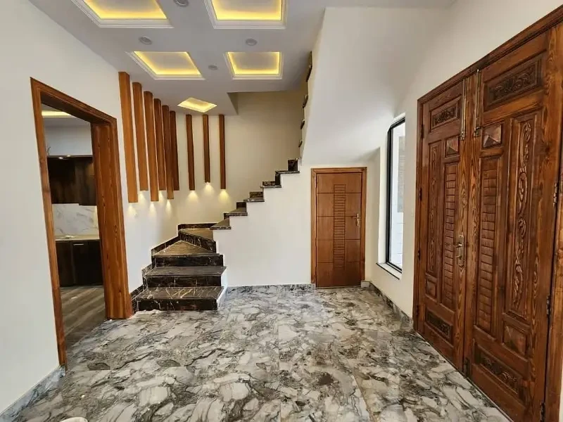 A 5 Marla double-story villa with a luxurious design is available for rent in Buch Executive Villas, Multan. The villa features 3 master bedrooms, 5 bathrooms, 2 American-style kitchens, 2 TV lounges, and a small car porch. It offers a modern and comfortable living environment suitable for families.