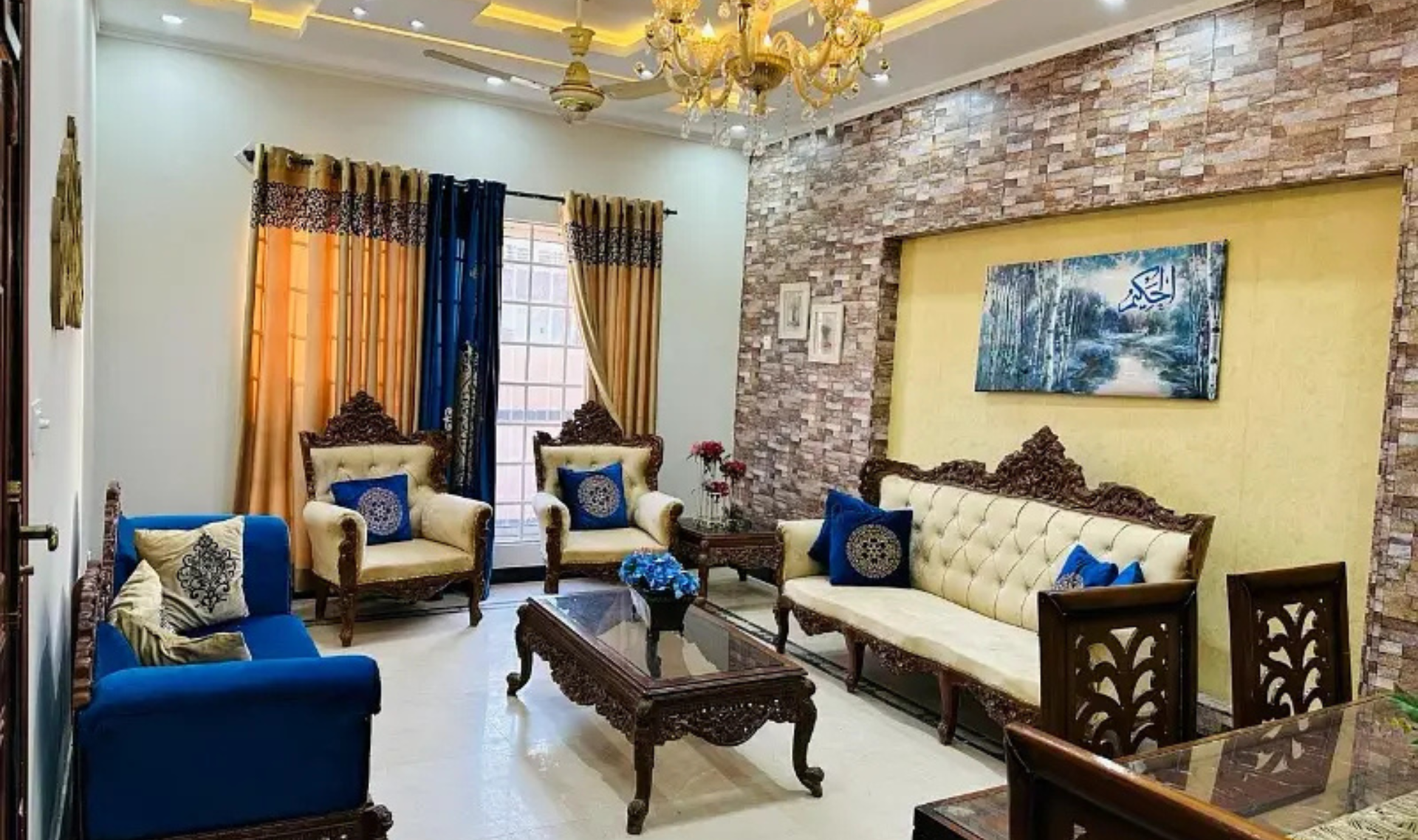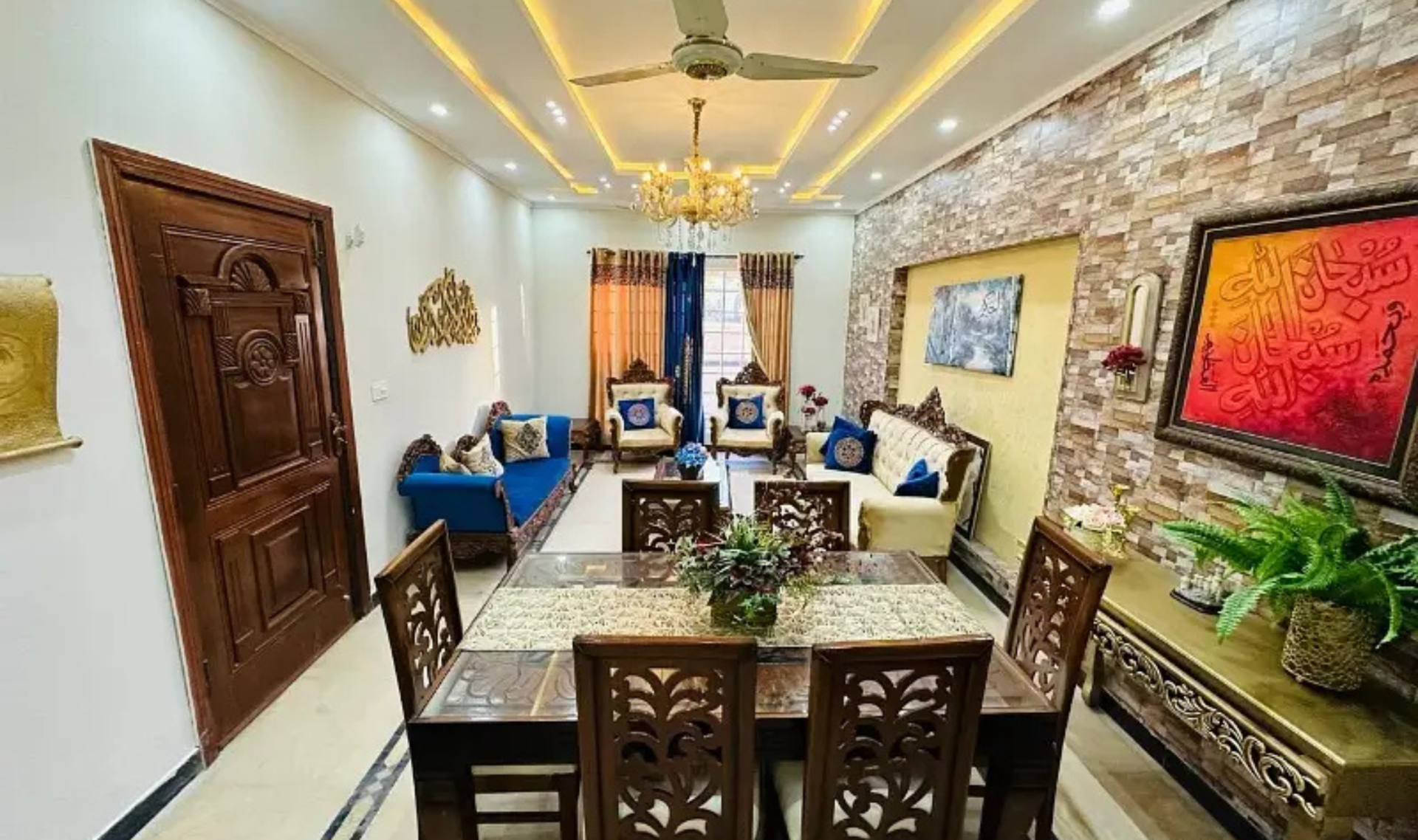 This fully furnished luxury house in Bahria Town Phase 8 Rawalpindi offers a comfortable and modern living environment with high-quality finishing and well-maintained interiors. The property features spacious living areas, elegant design, and a rooftop BBQ sitting space, making it ideal for family gatherings and relaxation.