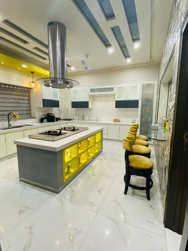 A beautiful and luxurious 20 Marla double-storey house is available for sale in University Town, Sargodha Road, Faisalabad. This elegantly designed home offers 5 master bedrooms and over 7 bathrooms, each featuring Spanish tiles and high-quality fittings. The property includes two modern Italian SMC kitchens with complete accessories, two spacious TV lounges, a stylish drawing room, and a dedicated store or study room.
