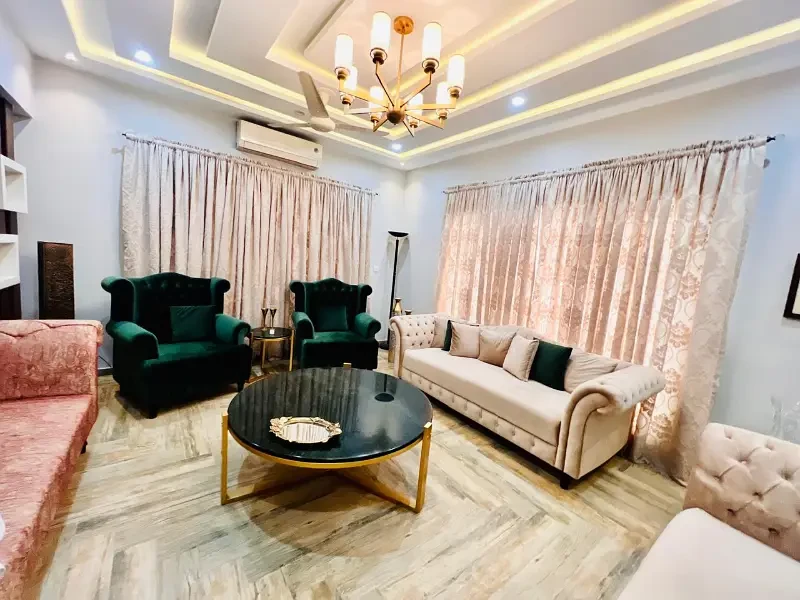A beautifully designed double-unit house located in a prime area of DHA Phase 1. The home offers spacious and stylish interiors, including an elegant drawing/dining area, a study room, and a dedicated prayer space for added convenience