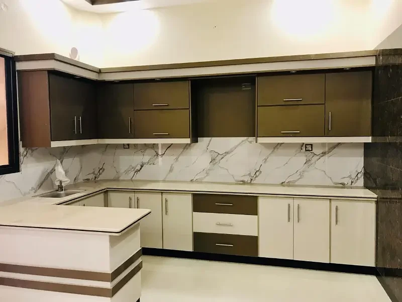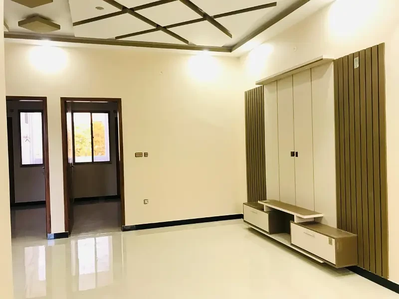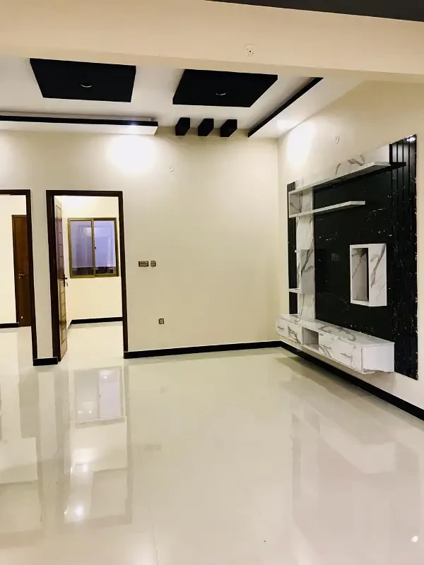 A brand new 120 sq. yards house (G+1) is available for sale in Sector Q, Gulshan-e-Maymar, Karachi. This modern home is west open and situated on a 40-feet wide road, offering excellent accessibility and a prime residential environment. The house features 4 spacious bedrooms with attached baths, 1 common bath, drawing rooms and TV lounges on both floors, and 2 modern kitchens with high-quality fittings.