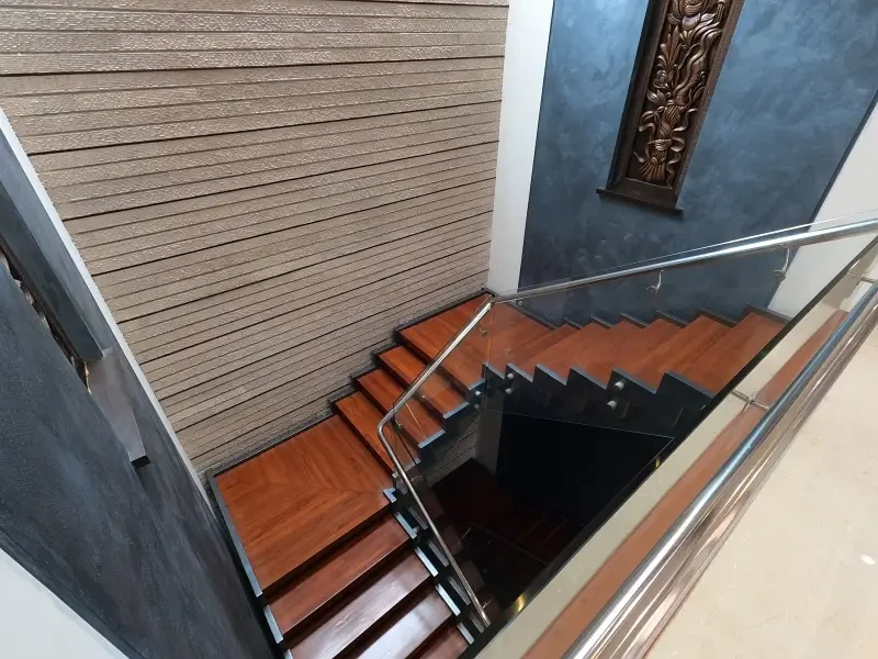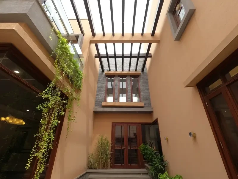 Built with premium materials including Amreli 60-grade steel, waterproofing, termite treatment, and heat-proofing, the house ensures structural excellence. It offers 6+ bedrooms, 6 bathrooms, double kitchens, lavish lounges, and imported woodwork using Burma teak, Gold teak, and Oak. The property includes high-end electrical fittings, marble and Italian/Spanish tiles, sandstone and basalt stonework, sophisticated plumbing fixtures, and tempered glass installations.