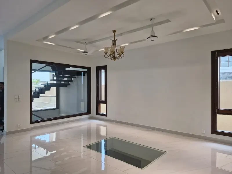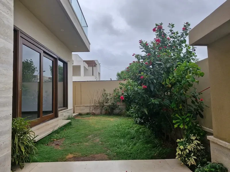 A brand new luxury bungalow is available for sale in DHA Phase 8, Karachi, at a price of Rs. 19.89 Crore. Situated in the prime D-Cutting area, this modern 500 sq. yard property offers 5 bedrooms — 2 on the ground floor and 3 on the first floor — along with 6 bathrooms. The full basement features a private swimming pool, a fully equipped gym, and a home theatre, providing ultimate luxury and comfort.