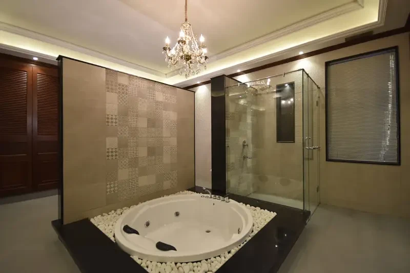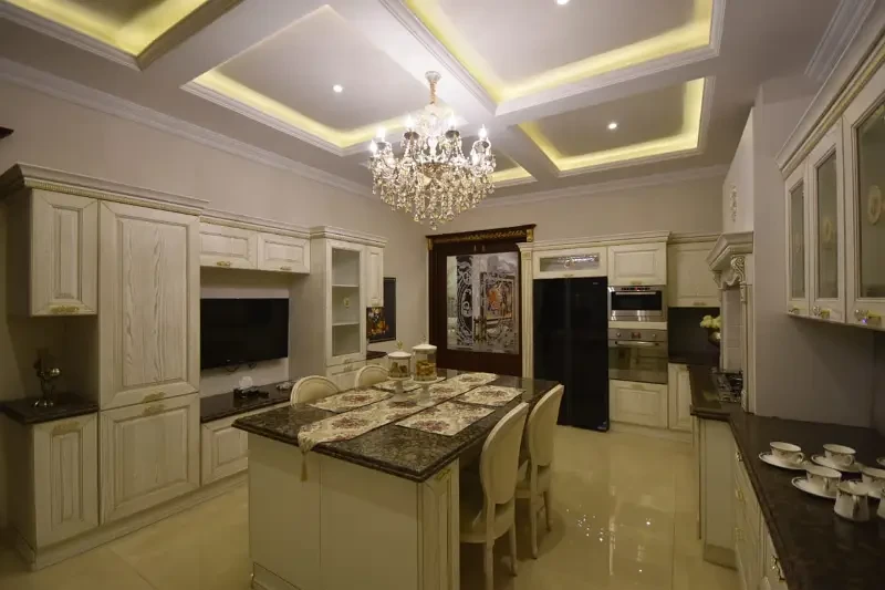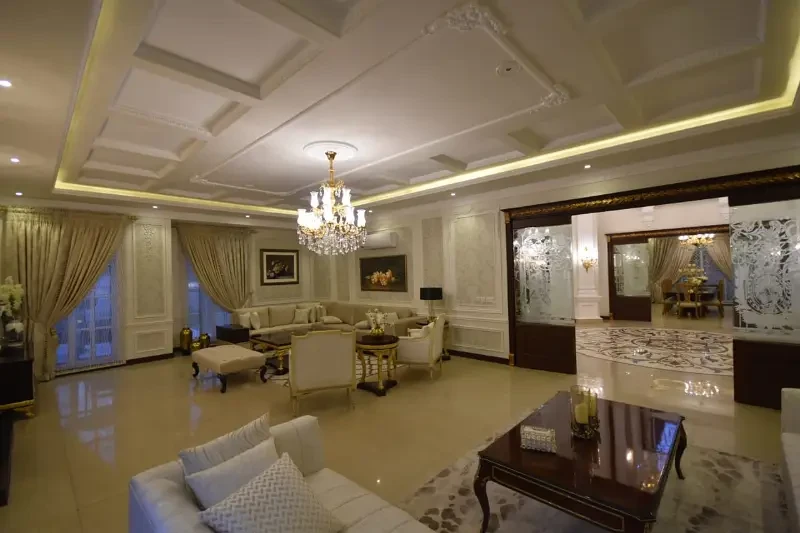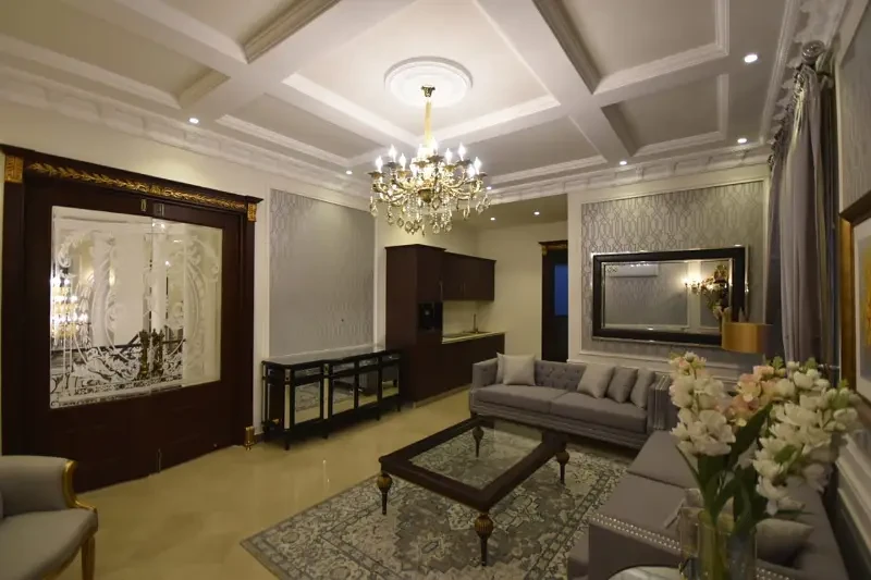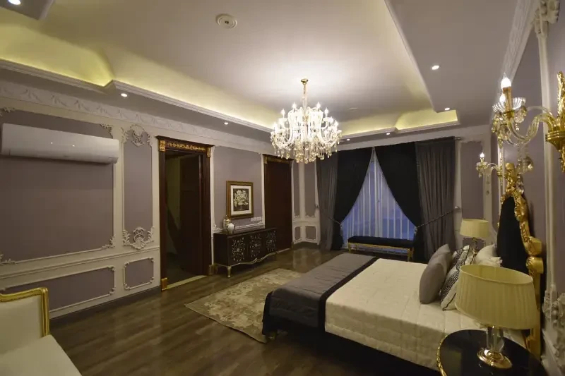 Key features include a double-height lobby, elegant Fincera lights and chandeliers, branded tiles throughout, solid ash-wood work, branded media walls, and premium Gorhe and Kale sanitary fittings. The property is fully equipped with heat-proofing and seepage protection, ensuring comfort, style, and durability. This home combines modern luxury with functional design, making it an ideal choice for sophisticated living in Lahore