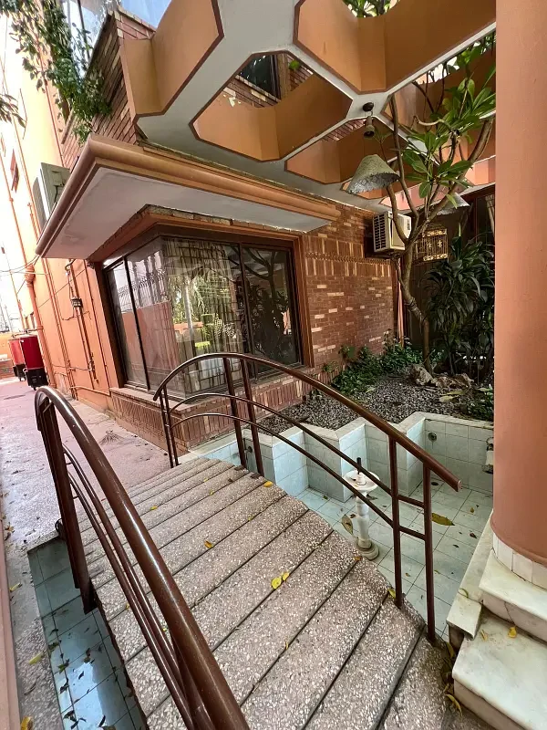 The modern kitchen comes fitted with imported appliances, complemented by solid wood doors, custom cabinetry, and marble flooring throughout. The house includes a separate servant quarter, a lush landscaped garden, and a wide car porch for multiple vehicles.