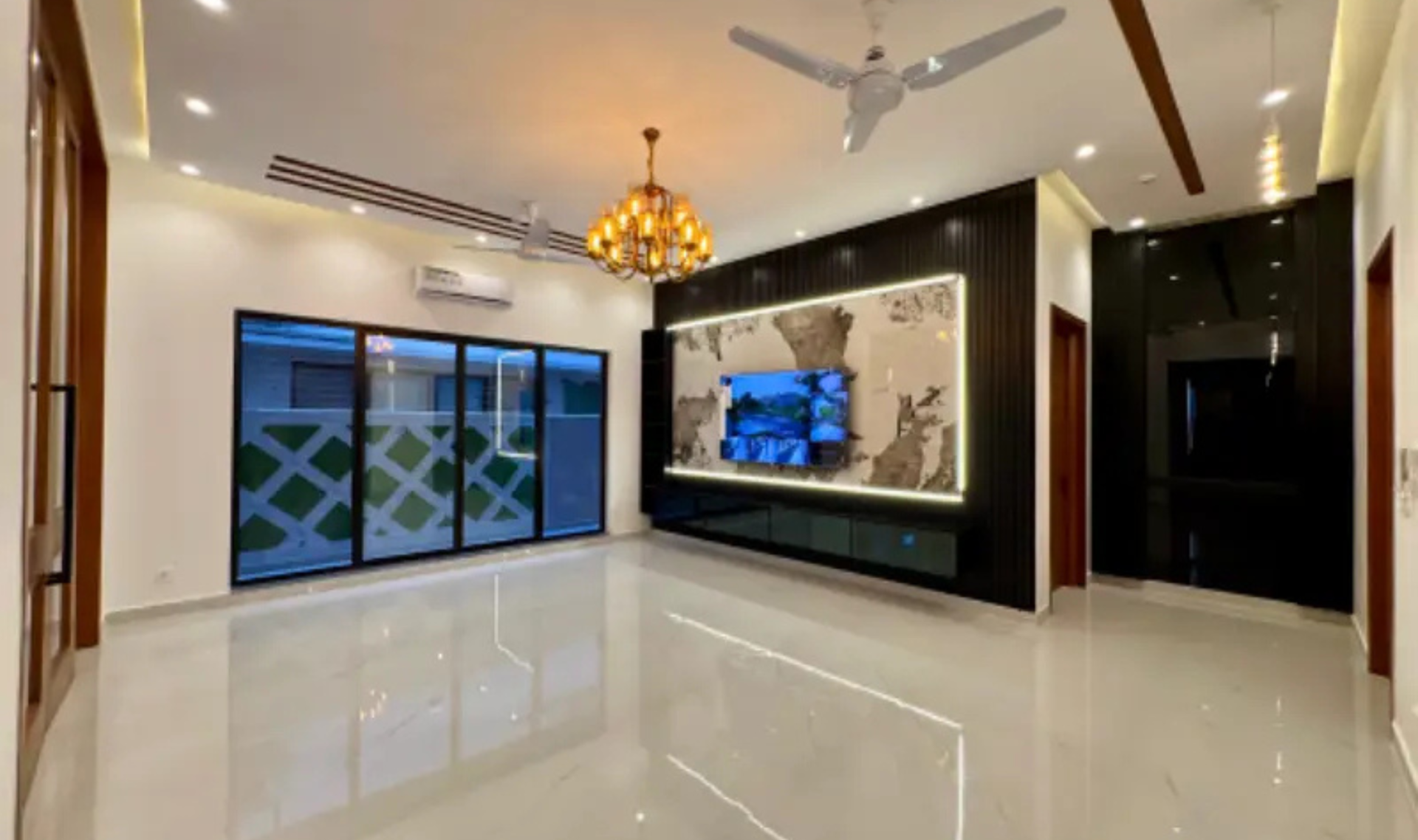Spanish tiled bathrooms, stylish fall ceilings, and high-end finishing reflect attention to detail. The home also includes complete UPS and generator wiring, along with special protection sheets installed in the upper portion to keep the house cool during summers.