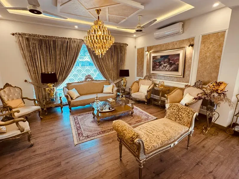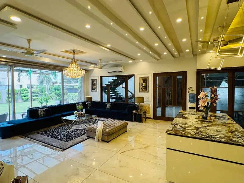 This stunning 2 Kanal house (1+1) in DHA Phase 6, completed in 2022, is filled with natural light and offers breathtaking views of the lawn. The property features a spacious basement with a drawing room, hall, pool, office, and sunken areas on both sides, providing a perfect blend of luxury and comfort.