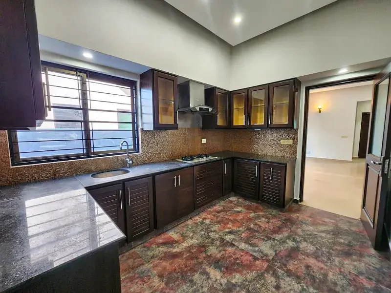 This beautifully designed 10 Marla double-story bungalow in DHA Phase 1, Lahore, offers modern luxury living in a prime location. The house features 4 master bedrooms with attached baths (total 5 bathrooms), spacious drawing and dining areas, and high-quality finishes throughout. It includes 2 Holzinn Home kitchens, a servant quarter, and ample parking for 3 large cars. The interiors are enhanced with imported wooden floors, Spanish tiles, ash wood door almirahs, stylish wallpapers, and top-quality fittings.