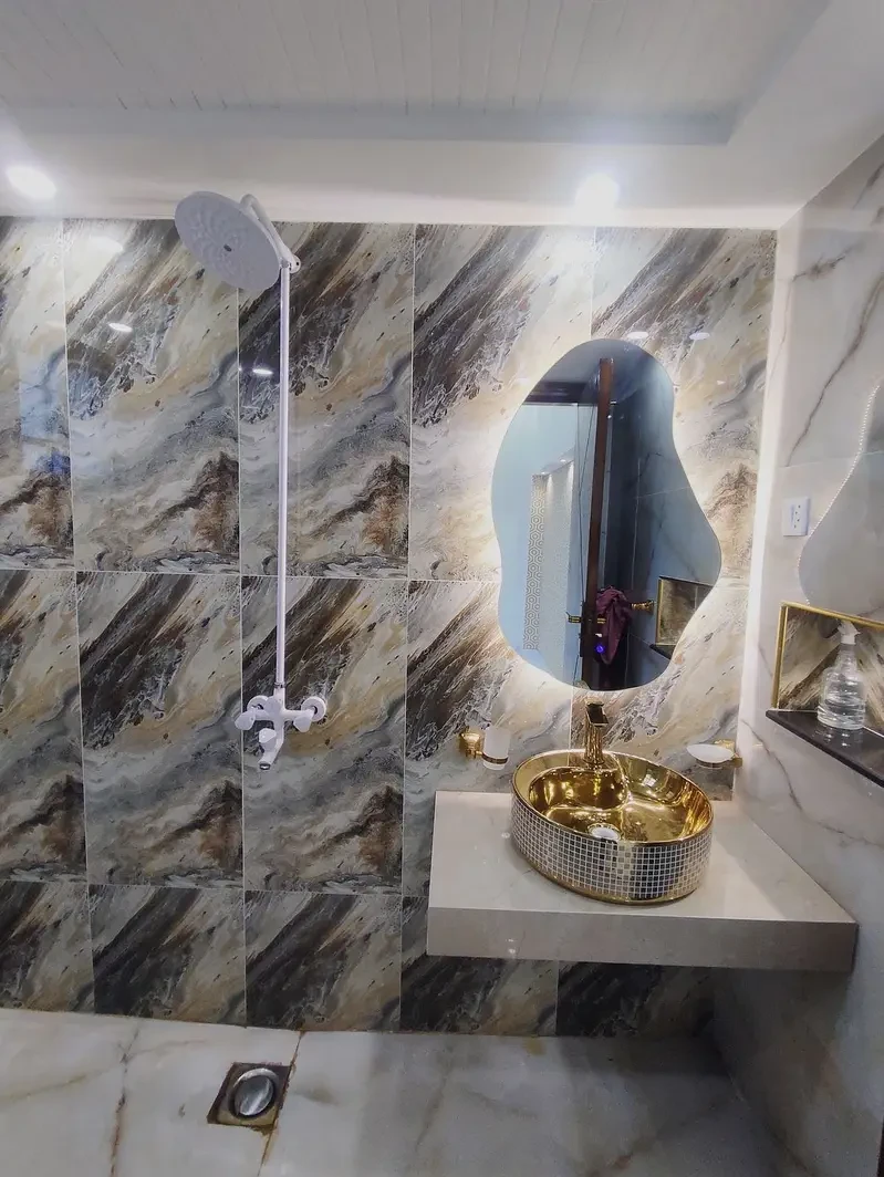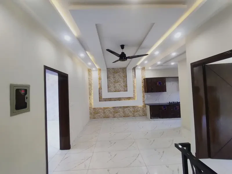 A premium quality 5 Marla modern house is available for sale in Khayaban-e-Amin, Lahore, at Rs 1.95 Crore. The house features 3 spacious bedrooms with attached baths, 4 bathrooms, elegant 2x4 premium tiles, a semi-Spanish style front elevation, and a beautifully designed interior by a professional designer.
