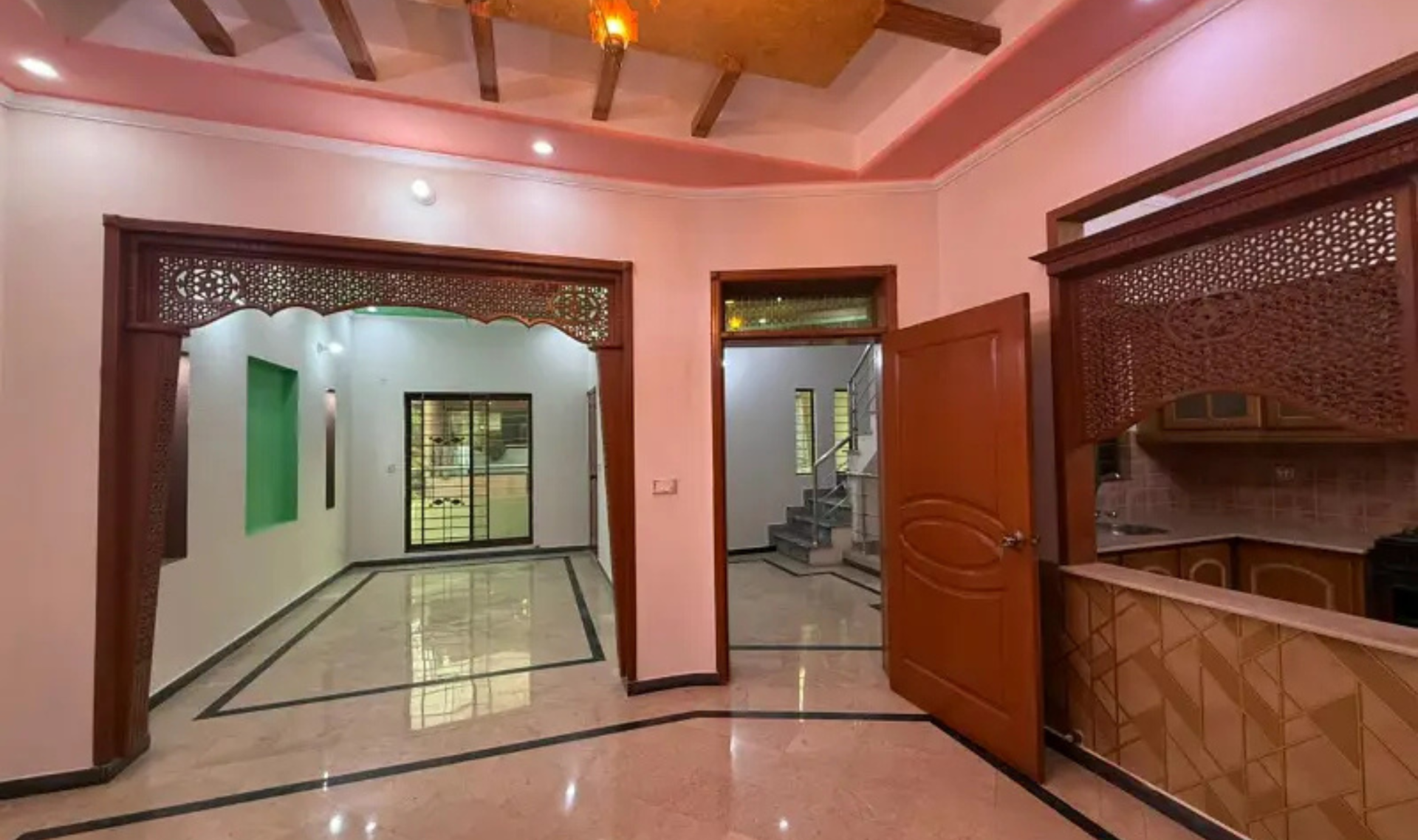 This owner-built double-storey house is thoughtfully designed with a spacious and practical layout, offering multiple living and sitting areas that enhance comfort and functionality. The elegant front elevation and combination of tile and marble flooring add a modern and stylish touch to the overall design.