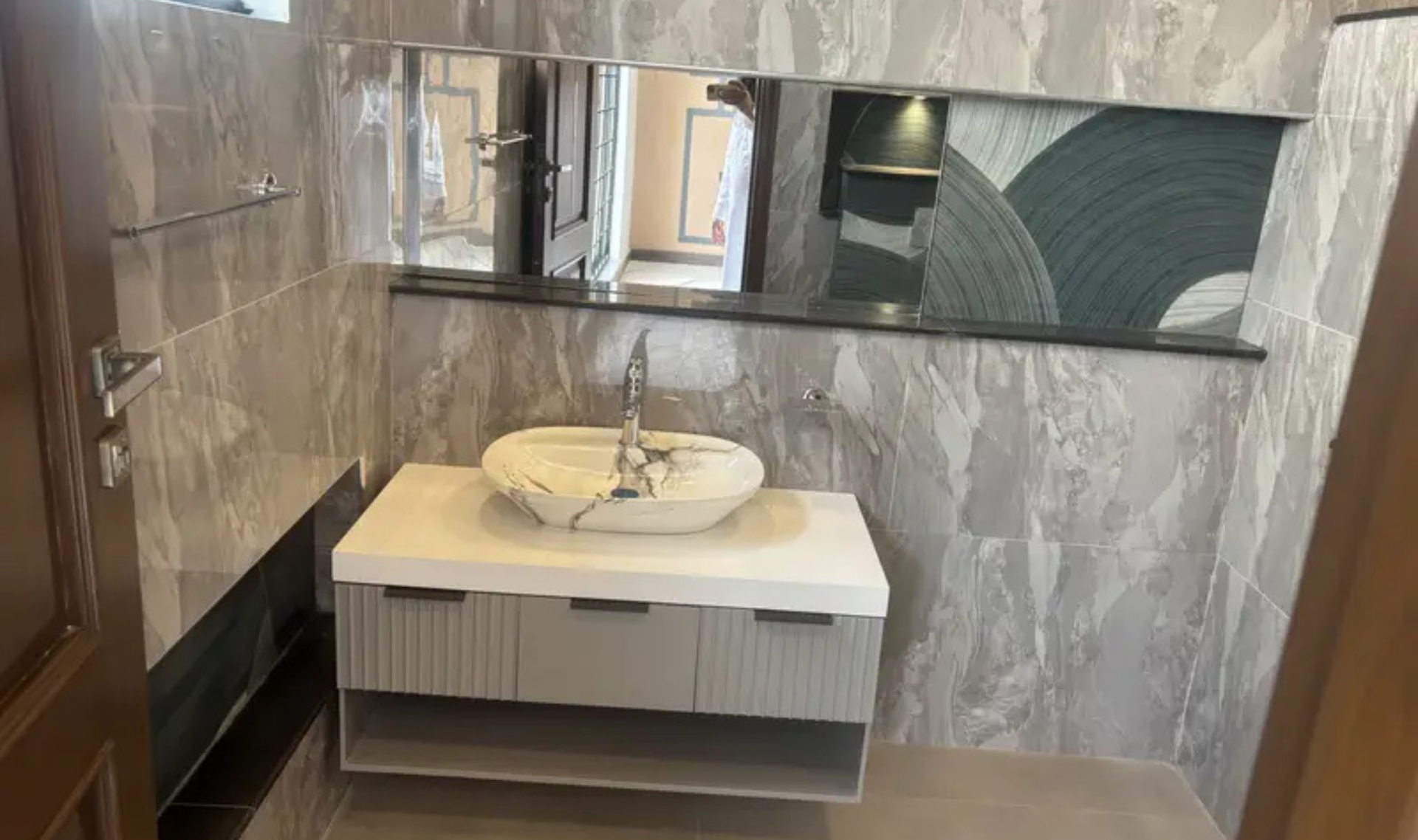 Waheed Estate presents a brand new ultra-modern house in Wapda Town Phase 1, Lahore. This stunning property features a double-height lobby, a top-floor penthouse, and solid construction with high-quality Ash wood work. The house comes with a spacious dining room, drawing room, and a company-made double kitchen, offering a luxurious and comfortable living experience.