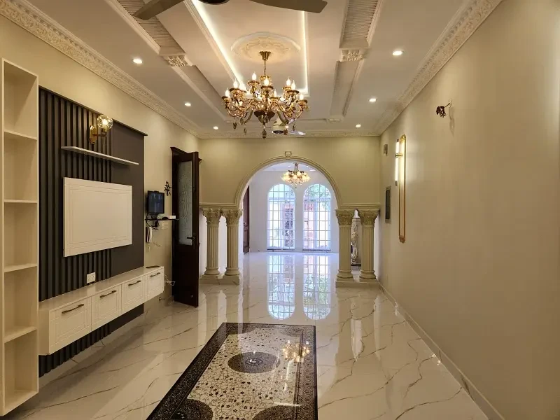 This newly constructed 10 Marla Spanish-style house offers premium luxury with high-quality materials, modern design, and elegant finishing. The property features a double-unit layout, spacious interiors, branded fittings, a servant quarter, and two car parking spaces, making it ideal for a comfortable and upscale lifestyle.