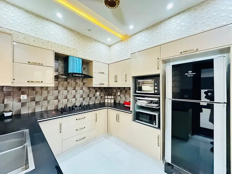 An elegant 1-Kanal bungalow is available for sale in a prime location of Block N, DHA Phase 1, Lahore. The bungalow features 5 master bedrooms with attached bathrooms, all equipped with imported fittings, a kitchen with exquisite woodwork, spacious TV lounge, store room, and prayer room.