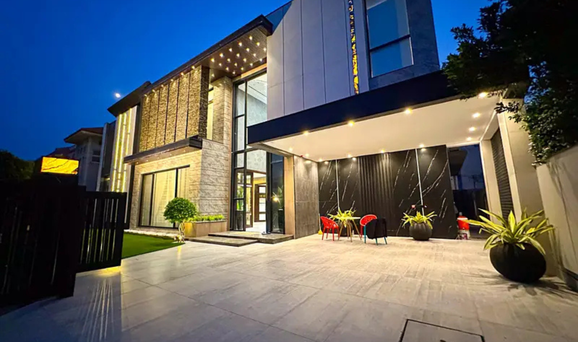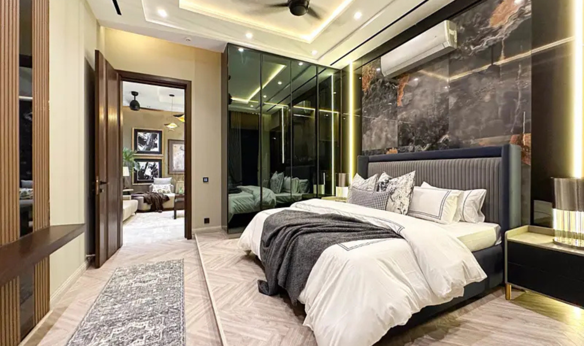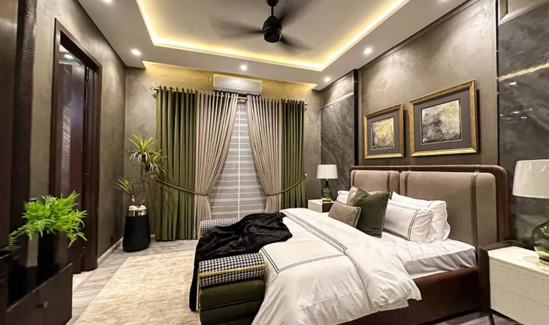 This beautifully designed 24 Marla house offers 6 spacious bedrooms with attached baths, along with a stylish drawing room and dining area. The property features a company-fitted kitchen, Jacuzzi tub baths with shower cabins, and air conditioners already installed. The balanced color scheme and premium finishing enhance the overall elegance of the home.
