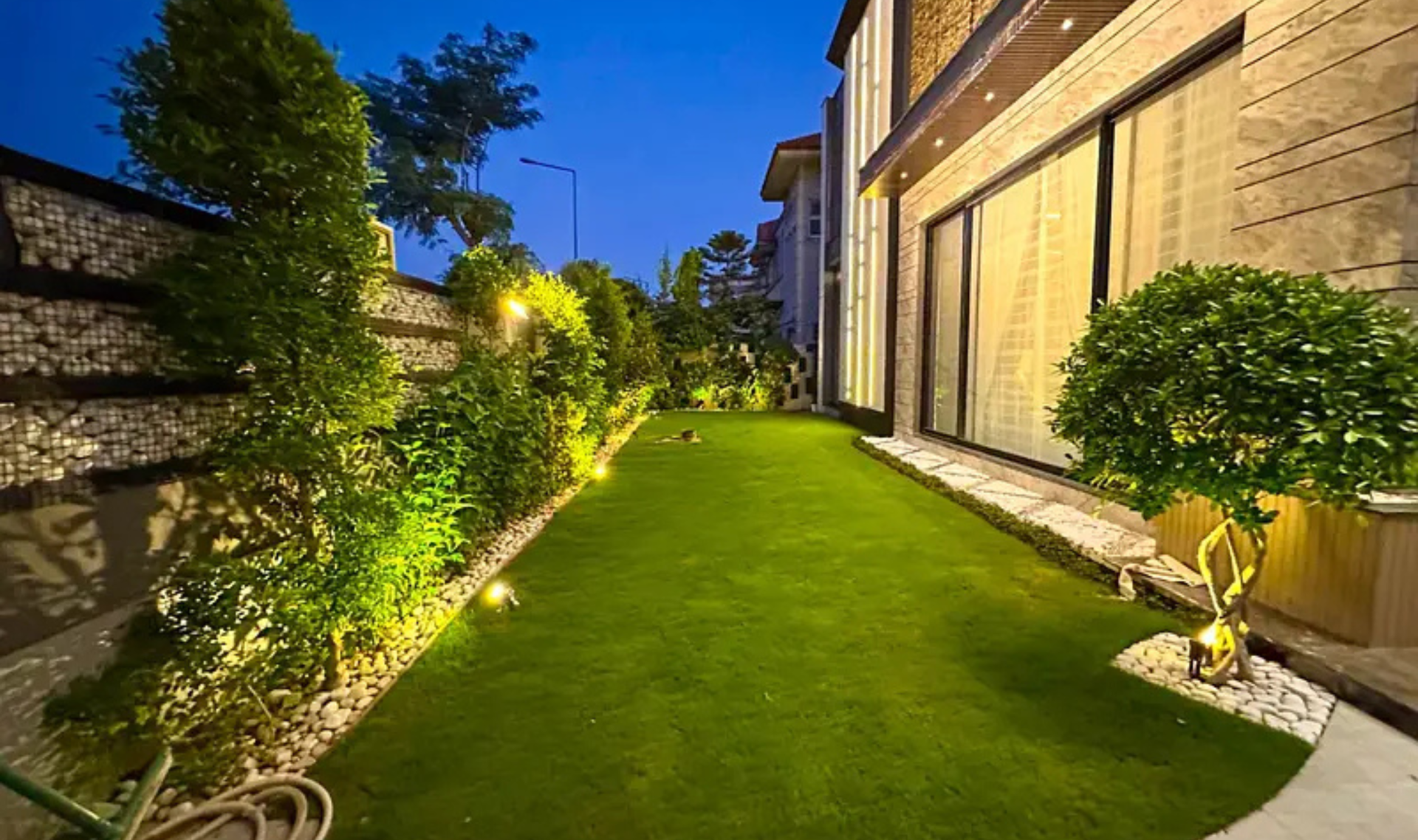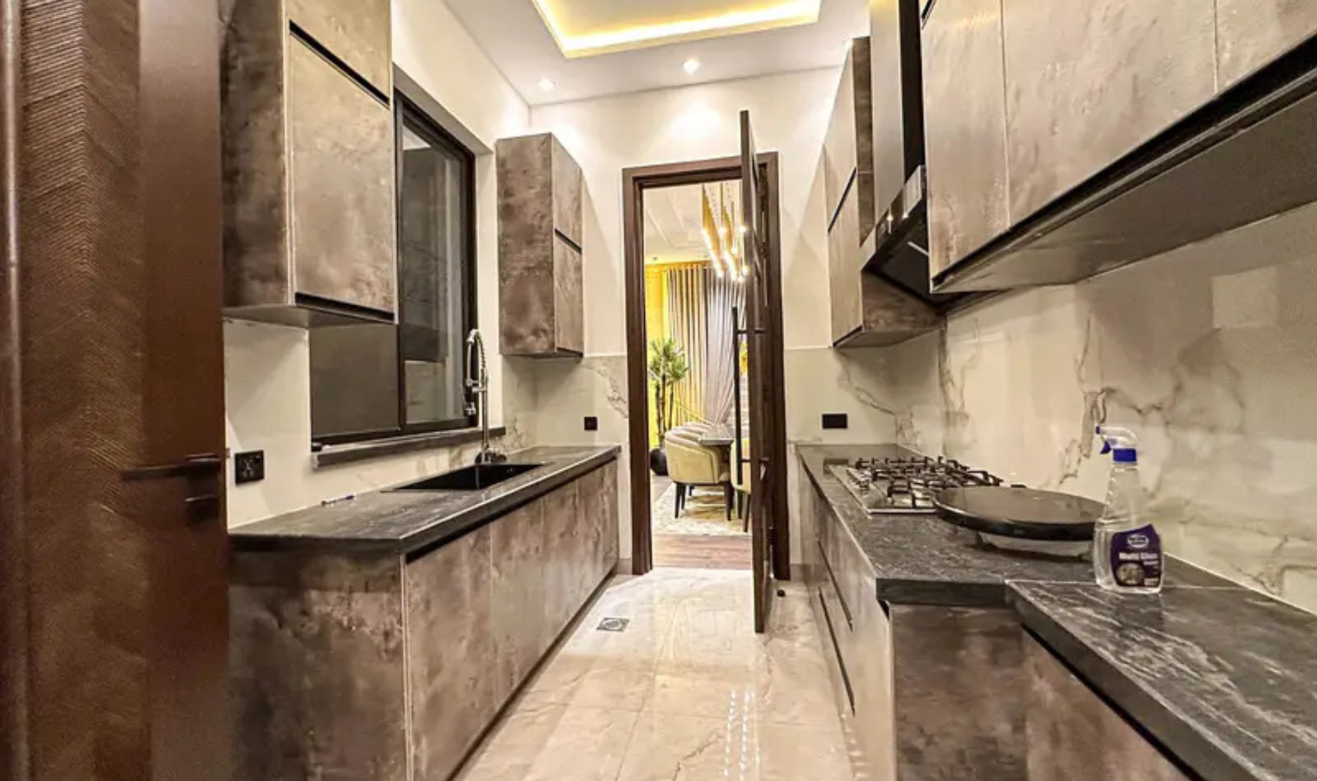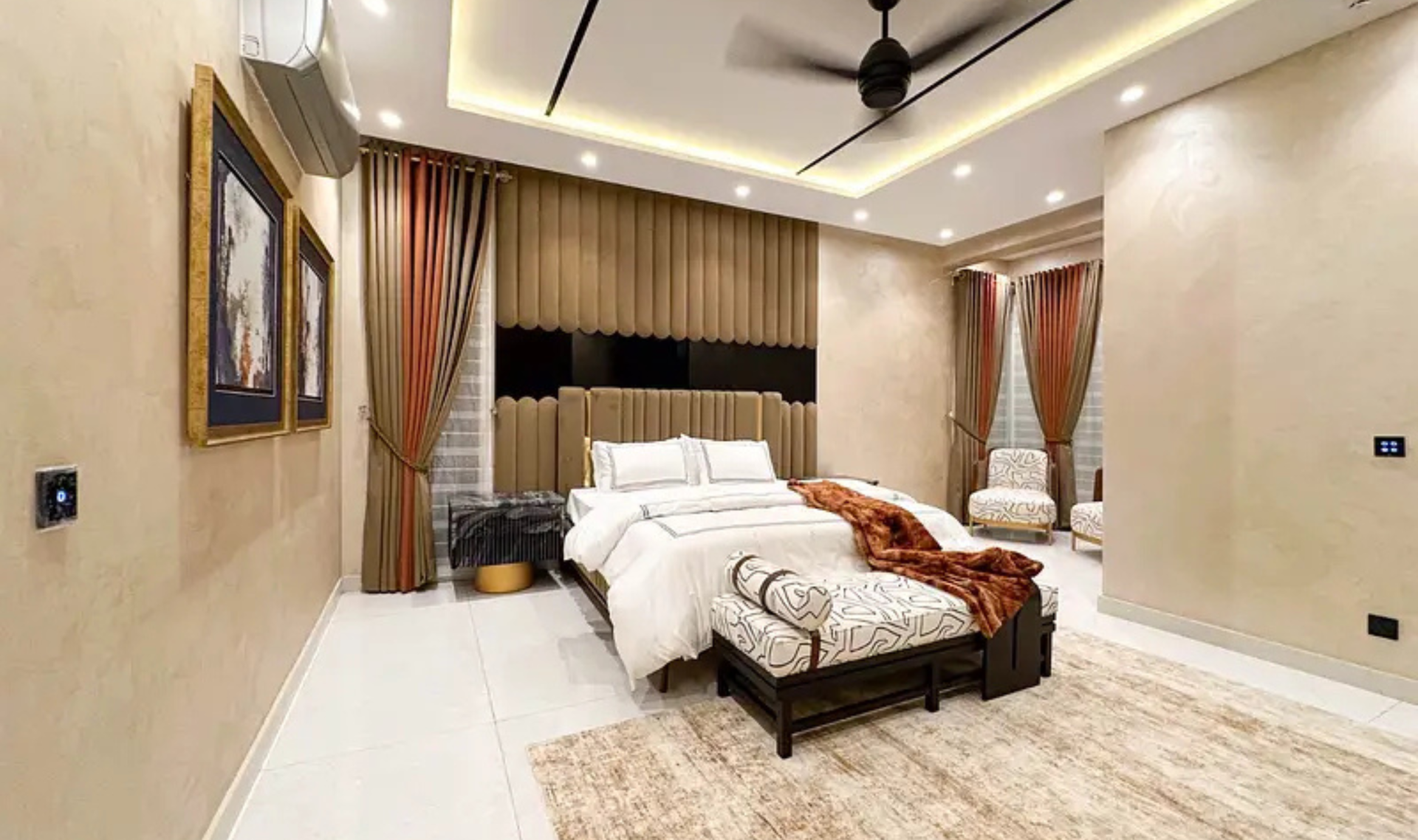 This beautifully designed 24 Marla house offers 6 spacious bedrooms with attached baths, along with a stylish drawing room and dining area. The property features a company-fitted kitchen, Jacuzzi tub baths with shower cabins, and air conditioners already installed. The balanced color scheme and premium finishing enhance the overall elegance of the home.