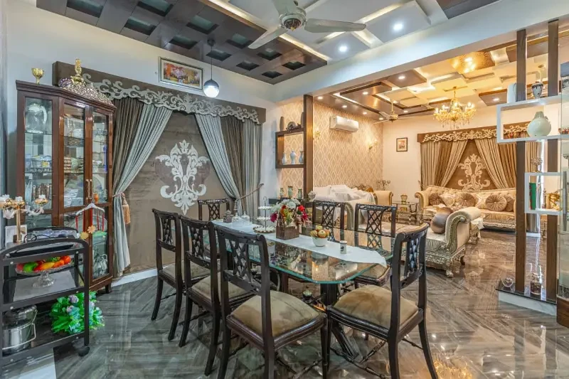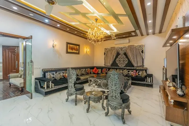 This stunning luxury house is crafted with a perfect balance of modern design and superior construction quality. The home features elegant tile flooring, detailed ceiling work, premium woodwork, and spacious living areas designed for both comfort and style. From the grand lounges to the designer kitchens, every part of the house showcases thoughtful planning and refined aesthetics.