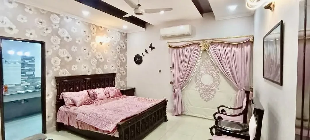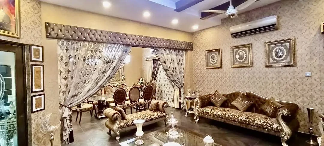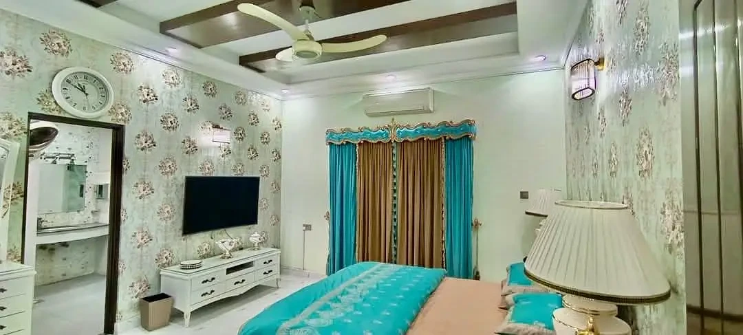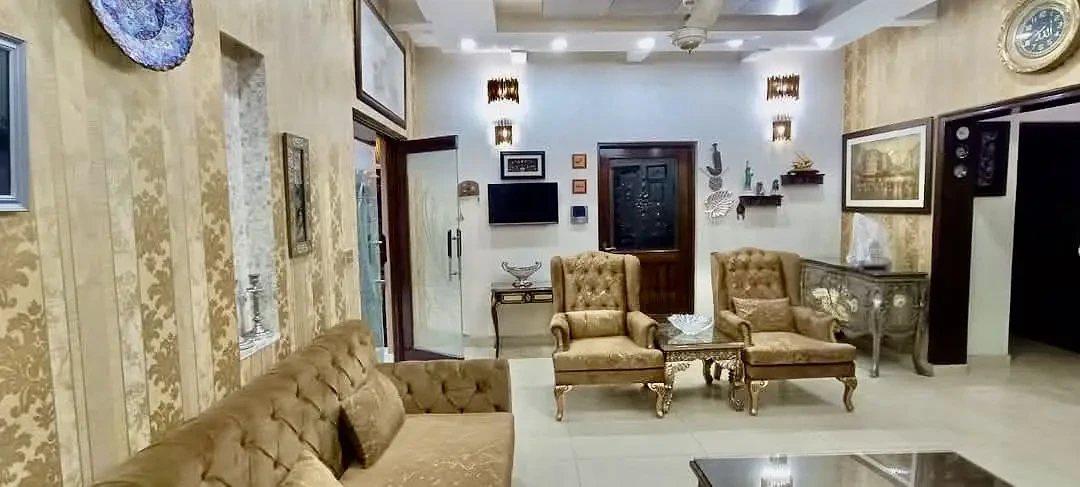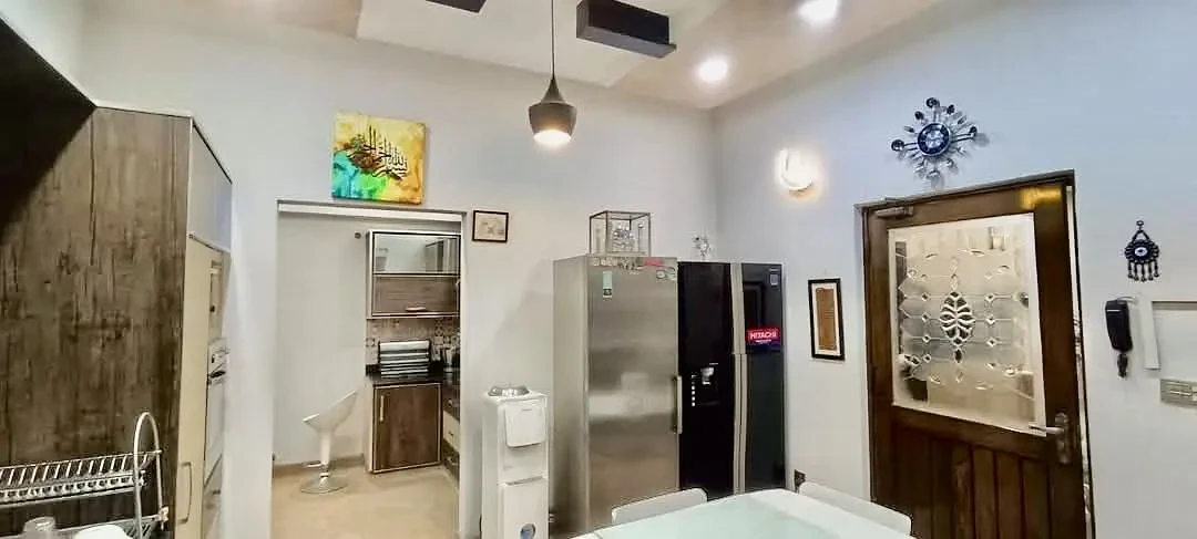 A 1 Kanal fully furnished modern house is available for sale in Abdalian Cooperative Housing Society, Lahore. This beautifully designed, owner-built home features 5 master bedrooms, 6 bathrooms, 2 kitchens, 2 TV lounges, drawing and dining rooms, and a powder room. The house is constructed with AAA quality materials, featuring tile flooring, solid doors, and imported fittings throughout.