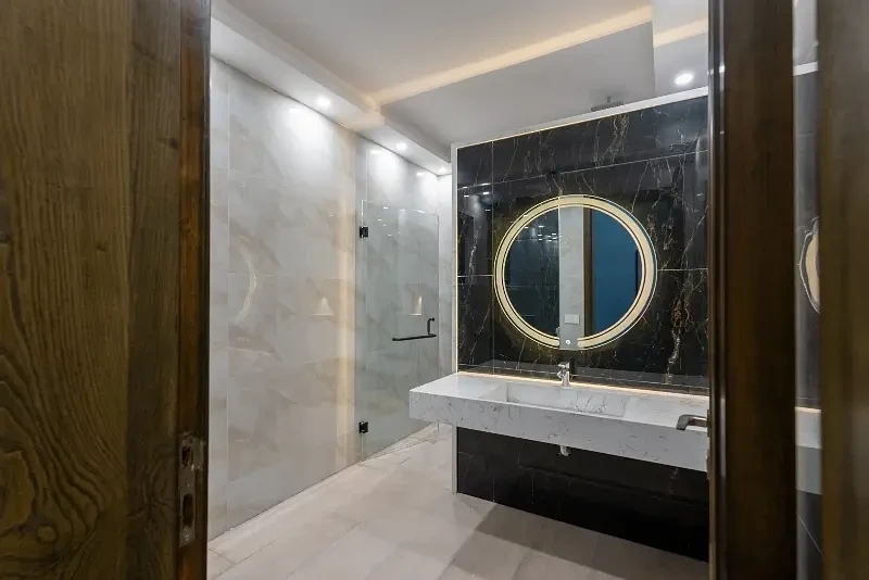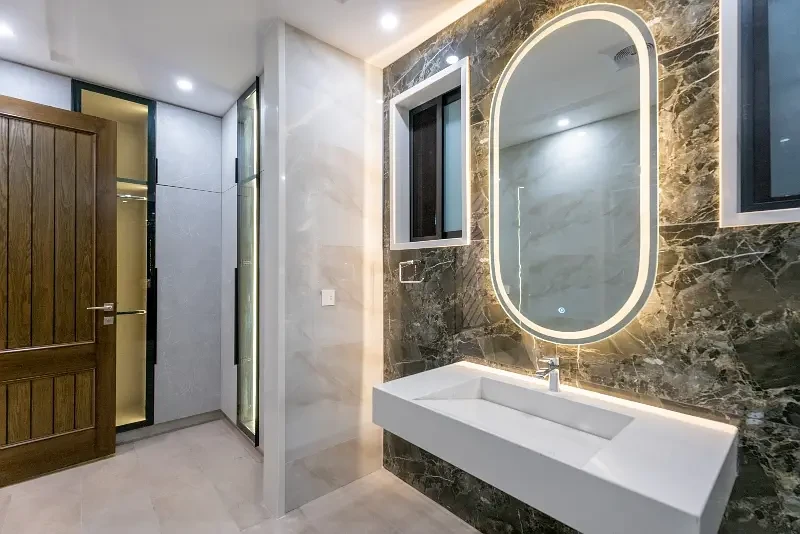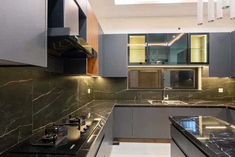 The property is built with AAA-grade solid construction, showcasing ash wood work, solid doors, and imported fittings. It boasts a spacious garage and a large car parking area with premium marble and tile flooring. The design is ultra-modern with a generous layout that stands out due to its map and elevation.