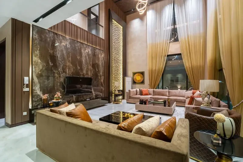 This fully furnished luxury bungalow offers an elite lifestyle with spacious living areas, designer lounges, and high-end finishes throughout. The property is thoughtfully designed with modern architecture and top-quality materials for ultimate comfort and elegance.