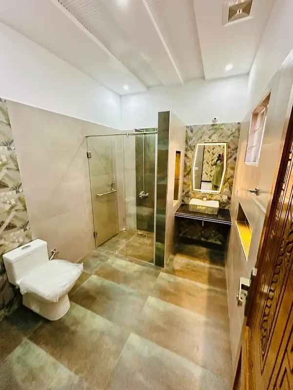 It includes Orient tiles, concealed toilet fixtures, a Jacuzzi, expensive chandeliers, and luxury wall lamps for a premium look. The property also offers privacy and BBQ terraces, hydraulic imported hood, piano-style kitchen sink, solid woodwork, and safety grills. With profile lighting, 5-blade premium fans, and a servant quarter, this house combines comfort, style, and modern living — making it a perfect dream home.