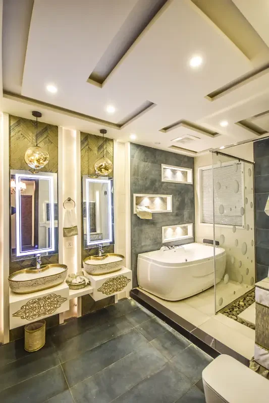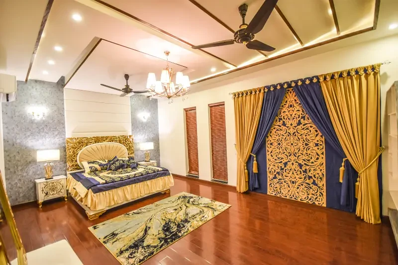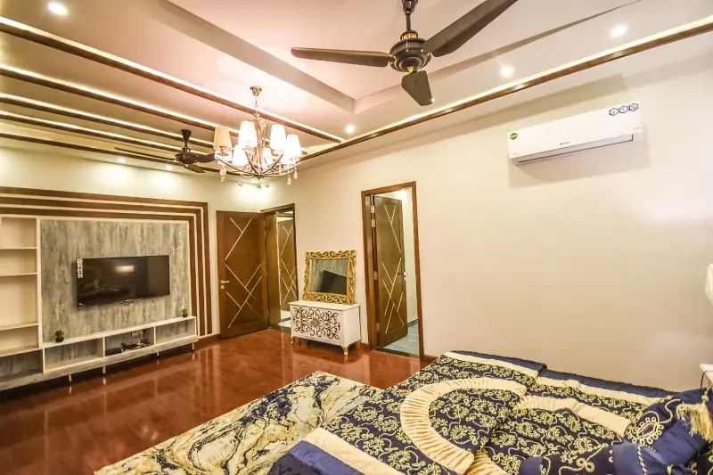Additional features include Grohe sanitary fittings, 2 store rooms, beautiful lawn and terrace, BBQ area, 2 imported Jacuzzis, and 5 cabin showers. The property enjoys a main approach from Ring Road, near Main Boulevard, DHA Office Complex, and all major banks. The bungalow is ready for immediate viewing, and meetings are possible 24/7.
