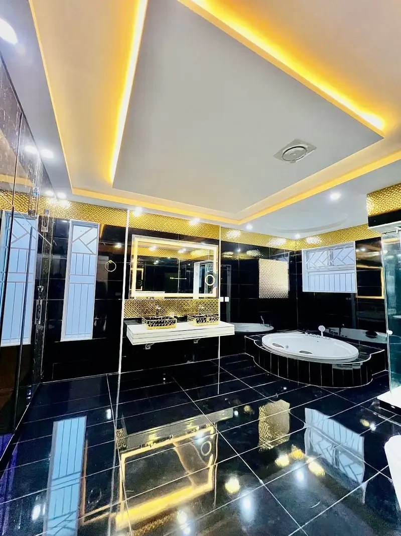 The bungalow features 6 spacious master bedrooms with attached bathrooms, along with 3 modern kitchens, 2 stylish TV lounges, a lavish drawing and dining room, a store room, and a powder room. Designed with AAA construction standards, it showcases all-tiled flooring, solid wooden doors, imported fittings, Spanish-style kitchens, Ash woodwork, and an outclass elevation.