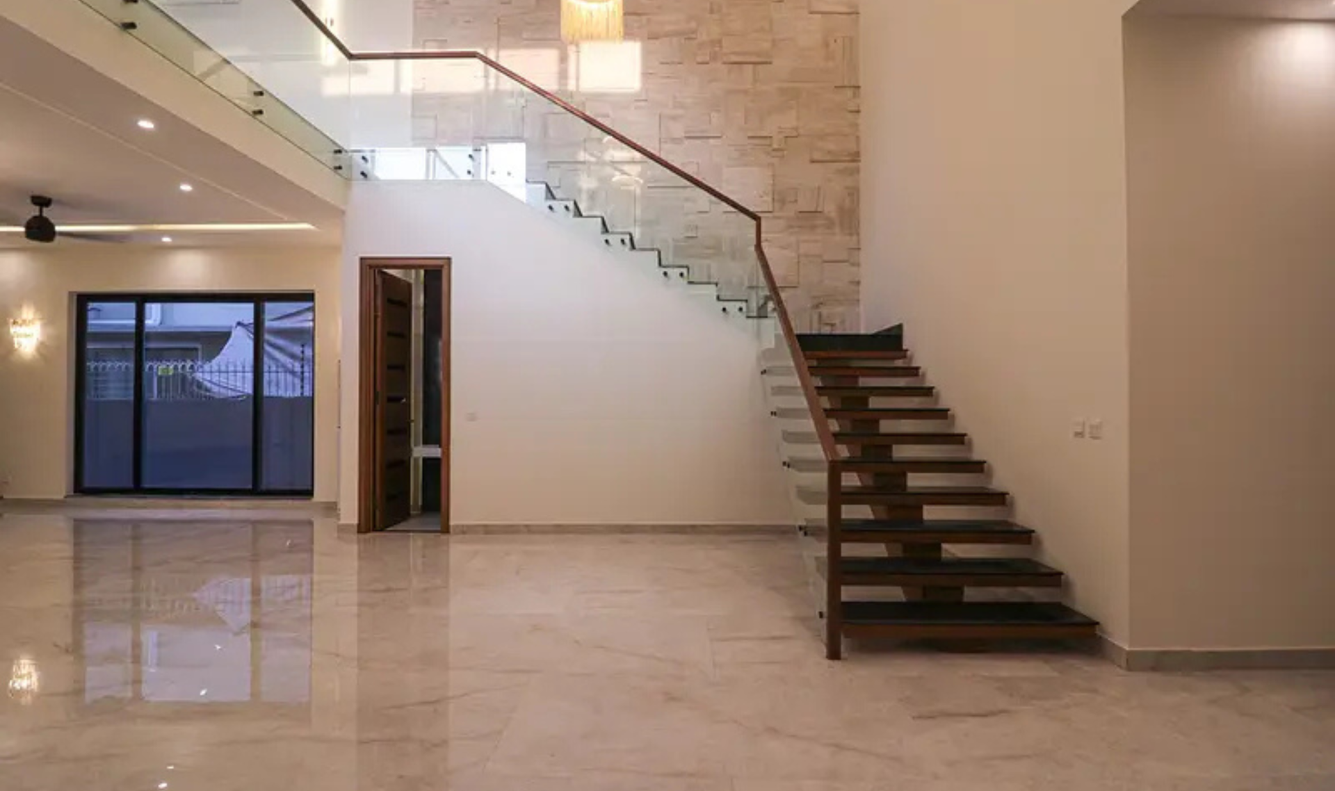 This spectacular newly built house offers outstanding construction quality and modern design. High-end teak and ash woodwork, solid steel gate, sliding doors, and complete marble, tiled, and wooden flooring reflect luxury and durability. The bathrooms are fully finished with imported Spanish tiles, ensuring a stylish and long-lasting finish. Complete UPS and generator wiring has been installed for convenience and uninterrupted living.