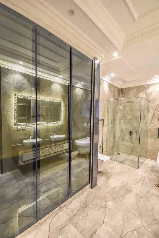 The bungalow offers 6-car parking, 2 large TV lounges, a drawing and dining room, powder room, 2 servant quarters, store rooms, and a dedicated sitting and barbecue area. With tile and wooden flooring, double-glass windows for soundproofing, complete UPS and generator wiring, CCTV provisions, solid steel work for gates and cabinets, and air conditioning throughout, this home combines comfort, style, and security.