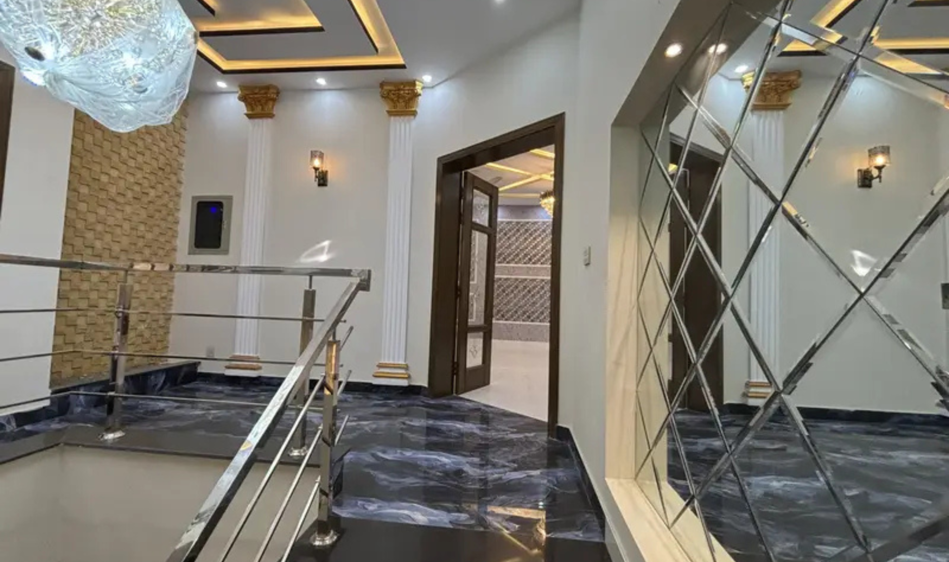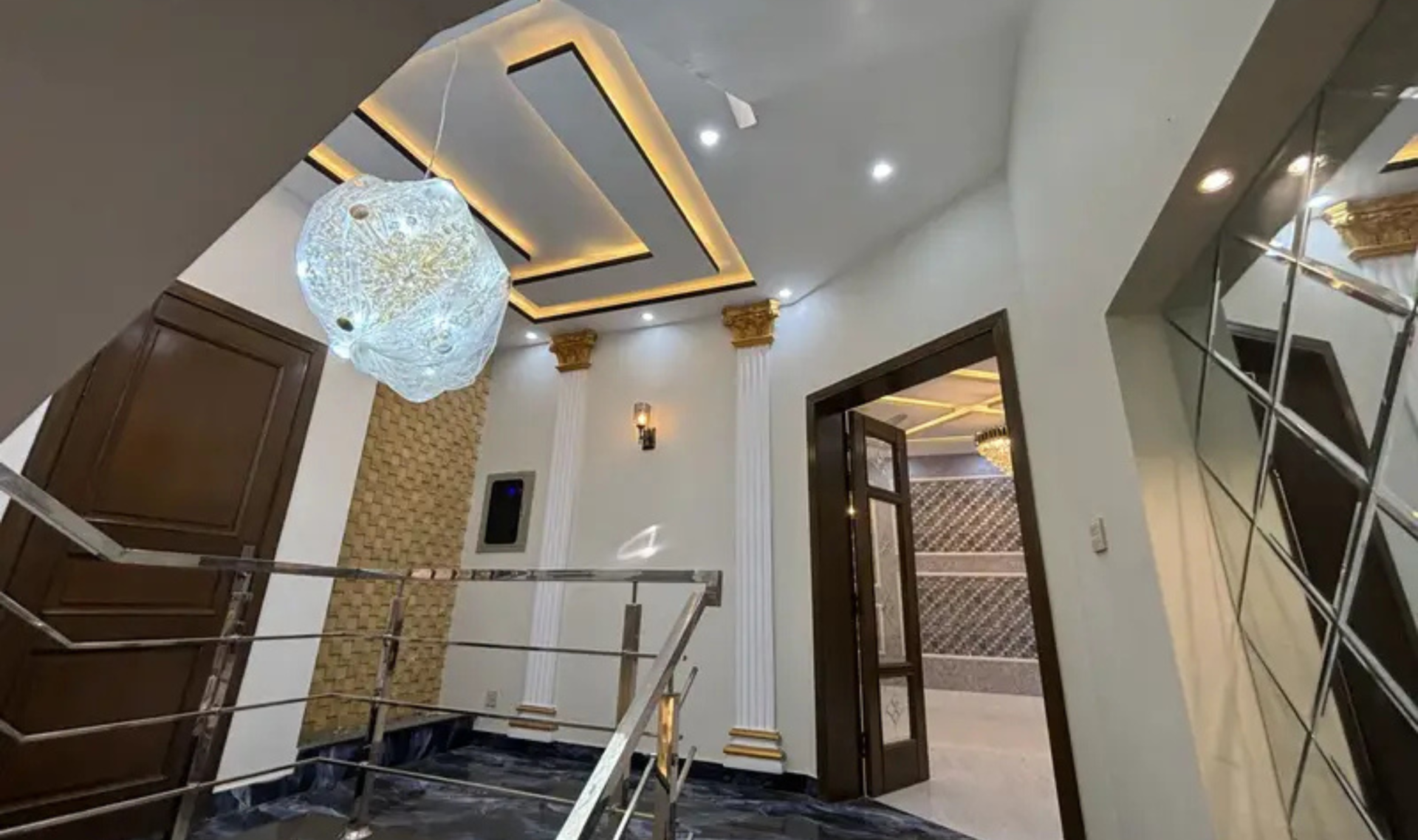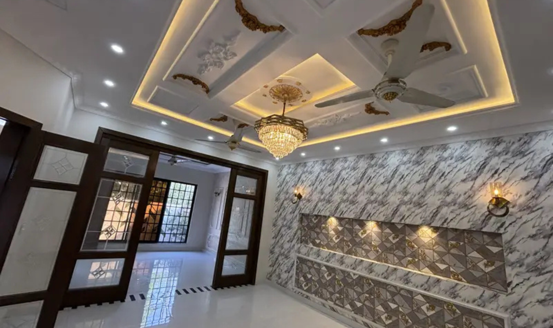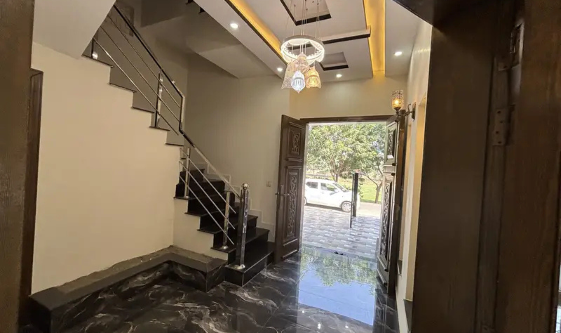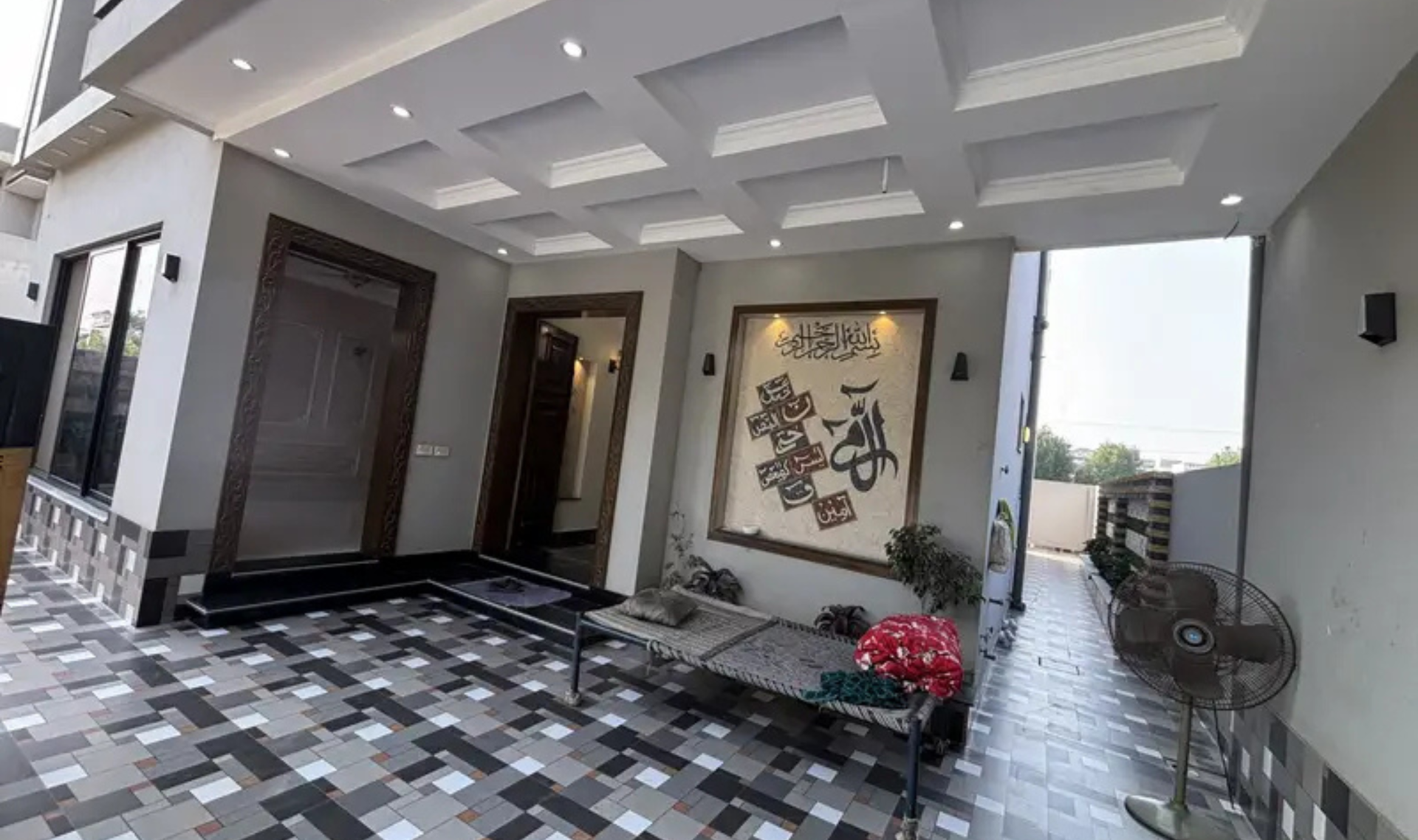 This modern-style house is built with solid construction and high-quality woodwork, offering a comfortable and durable living experience. The layout is spacious and thoughtfully designed, featuring a large TV hall, car porch, and beautifully finished interiors.