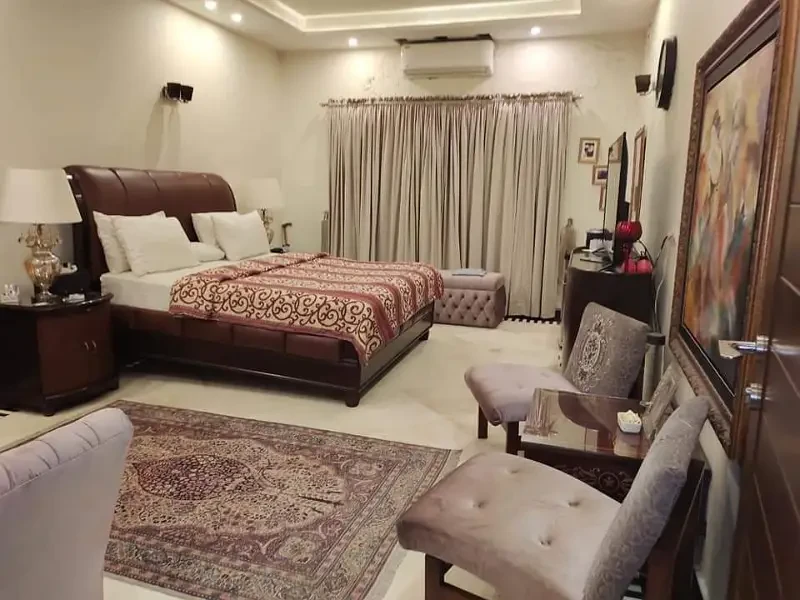 This lightly used, fully furnished 2 Kanal bungalow in DHA Phase 2 offers a luxurious and comfortable lifestyle. The house features elegant woodwork, marble/tiled flooring, and a superb elevation that enhances its beauty. Spacious TV lounge, store room, and prayer room add convenience for family living.