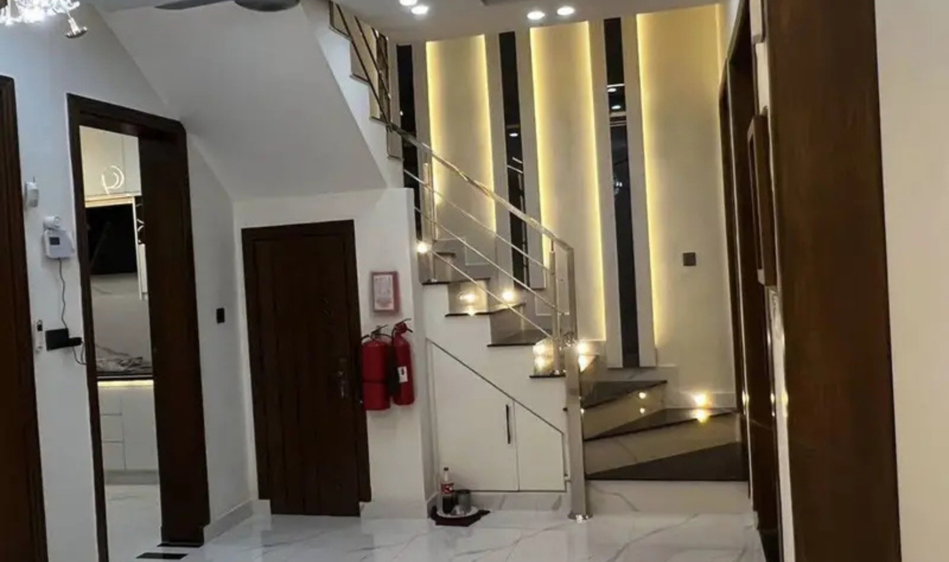 This modern designer 5 Marla house in Bahria Town Sector D, Lahore, offers a comfortable and stylish living environment. The house features four bedrooms with attached bathrooms, a well-planned layout, and contemporary design that makes it ideal for families looking for a quality home in a well-developed community.