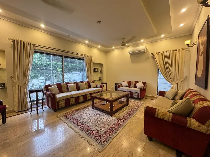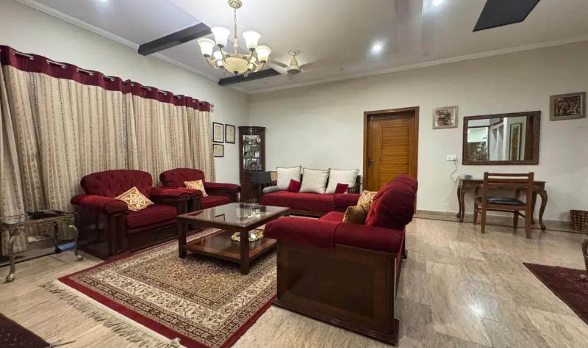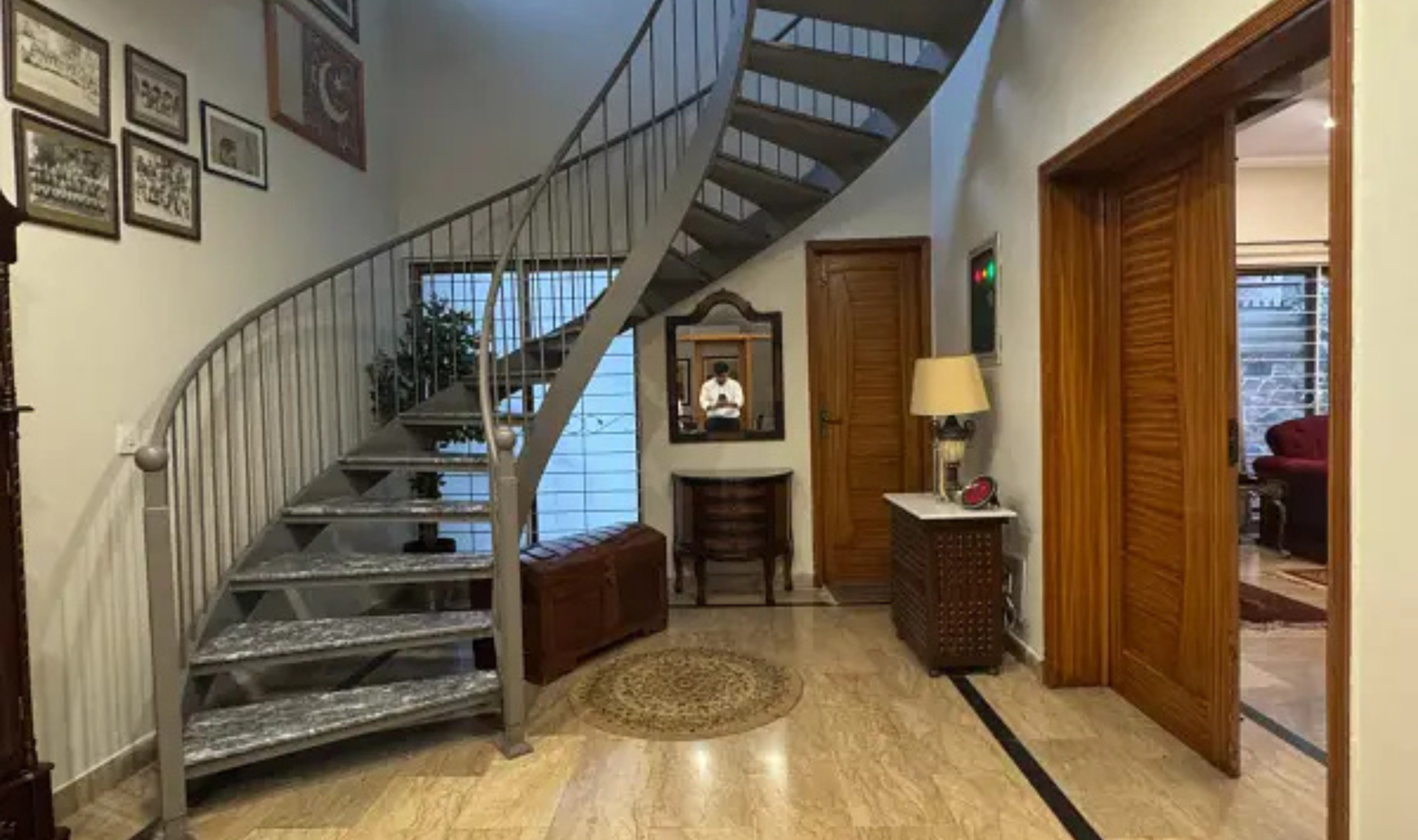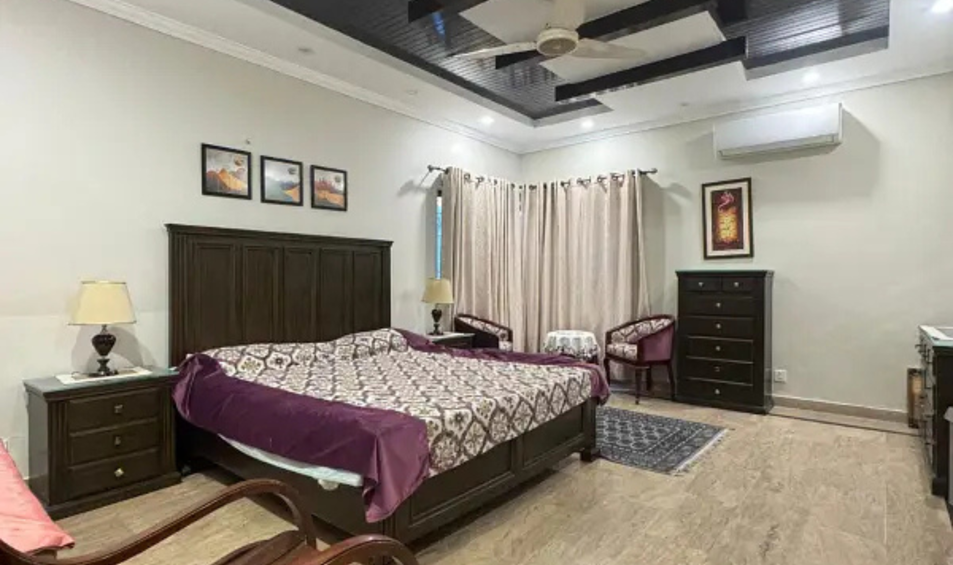 This slightly used 1 Kanal bungalow in DHA Phase 5, Lahore offers a blend of modern design and comfort. Featuring 5 master bedrooms with attached baths, 2 kitchens, 2 TV lounges, drawing and dining rooms, store room, and prayer room, every corner is designed for luxury living.