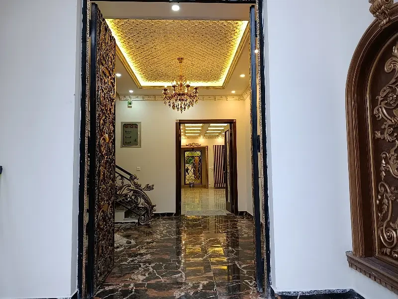 Hotline Associates presents a stunning brand new 1 Kanal luxury house designed in elegant Spanish style, located in the highly sought-after Johar Town area of Lahore. This beautiful home features 5 spacious master bedrooms with attached baths, a Spanish-tiled imported kitchen, lavish drawing and dining rooms, and a comfortable TV lounge. The house offers ample parking space with marble and tile flooring, a spacious garage, and separate stairs for convenience.