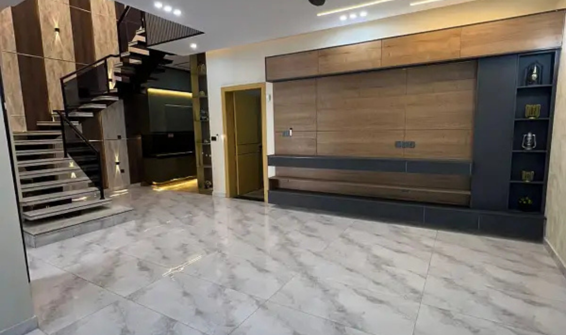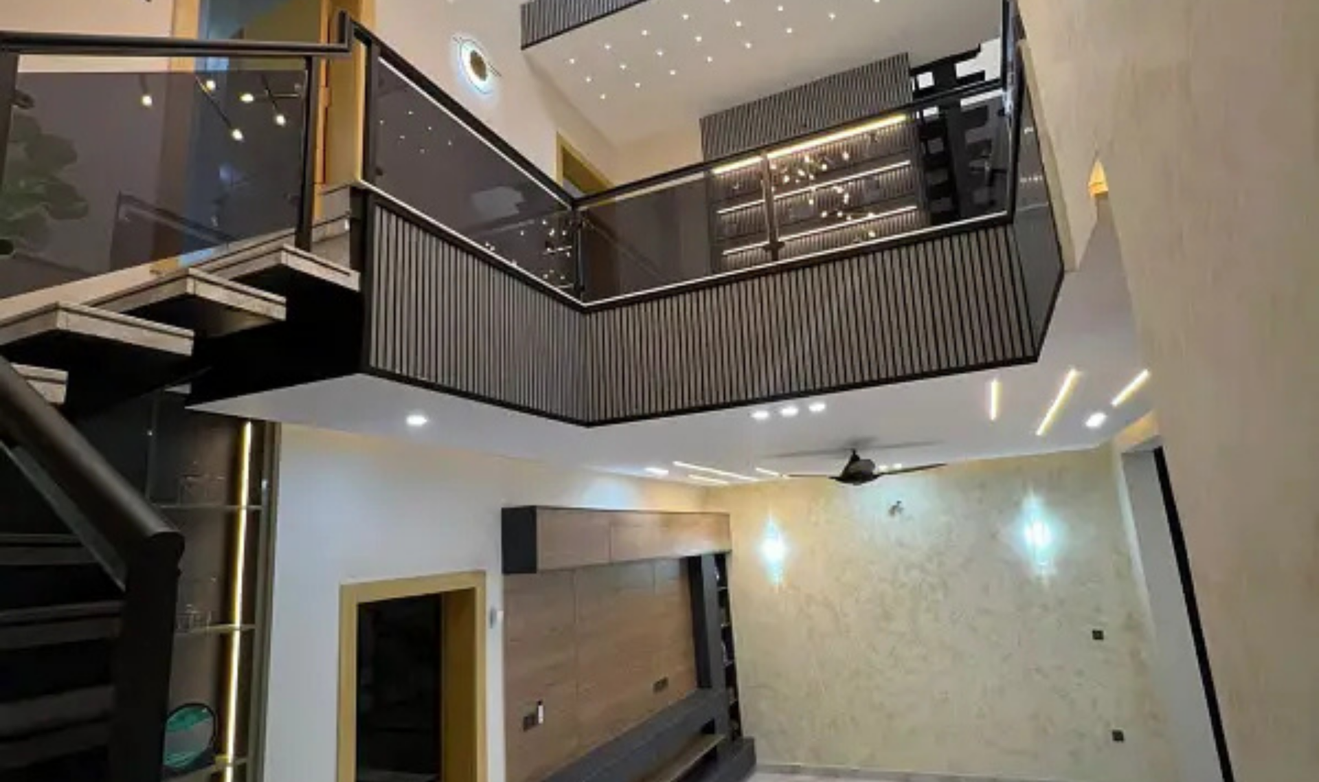 This brand new designer house offers a perfect blend of luxury and modern living. Beautifully designed with stylish interiors, it features a mezzanine floor layout, double height staircase with an elegant hanging chandelier, and premium front elevation. Every bedroom is thoughtfully designed with customized bed walls and media walls, creating a sophisticated and comfortable environment.