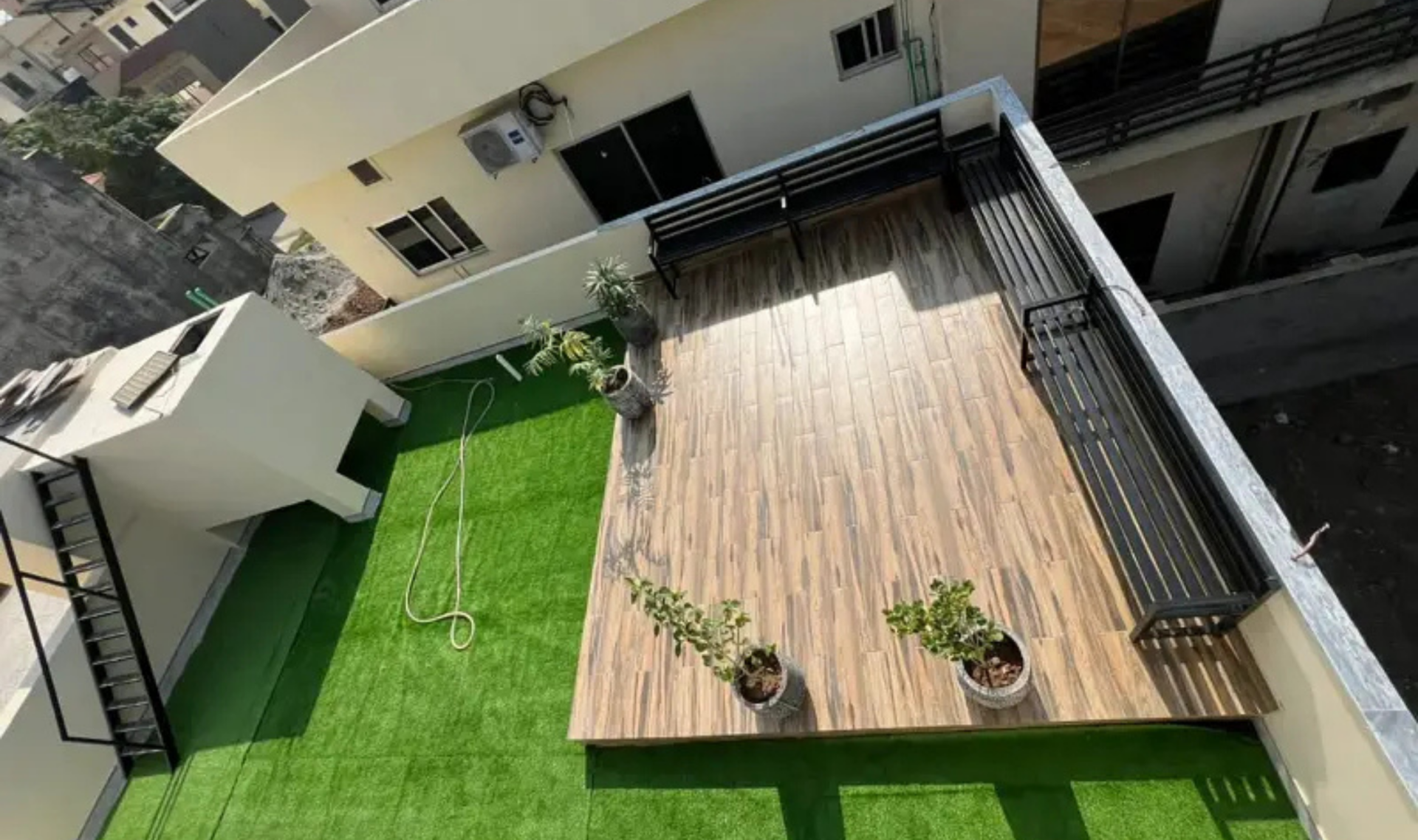 The house includes modern sanitary fittings, stylish washrooms with separate shower cabins, and a master bathroom equipped with a jacuzzi. A fully equipped modern kitchen comes with high-quality appliances including a Haier double door fridge, microwave, electric oven, dishwasher, and front load washing machine. The dedicated rooftop garden and sitting deck provide a peaceful space for relaxation and family gatherings.