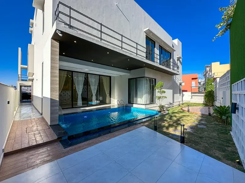 The house is equipped with premium facilities, including a private swimming pool and a home theater, ensuring a truly luxurious lifestyle. Built with a modern architectural design, it boasts elegant interiors, a stylish kitchen with quality fittings, spacious living and dining areas, a beautiful lawn, and ample parking space. Situated in a secure and peaceful neighborhood, this property is ideal for those seeking comfort, class, and convenience.