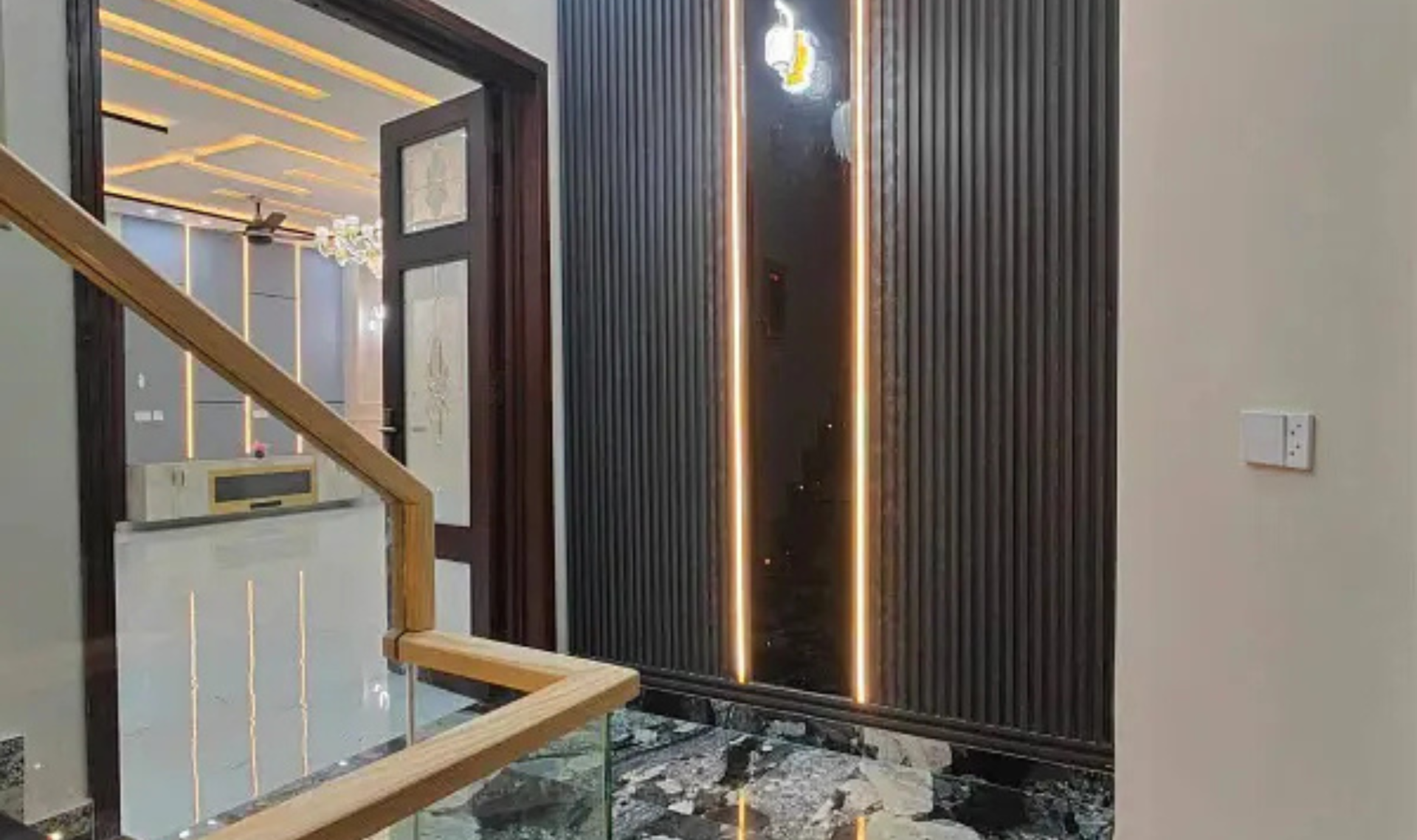 This 10 Marla luxury house in Bahria Town Phase 8, Rawalpindi, offers a well-planned double-unit design ideal for families. The property features bedrooms with attached bathrooms, providing comfort and privacy.