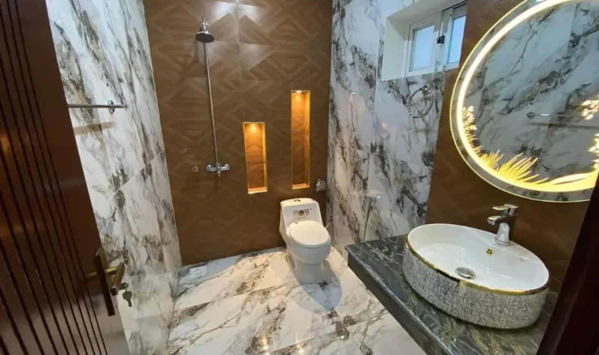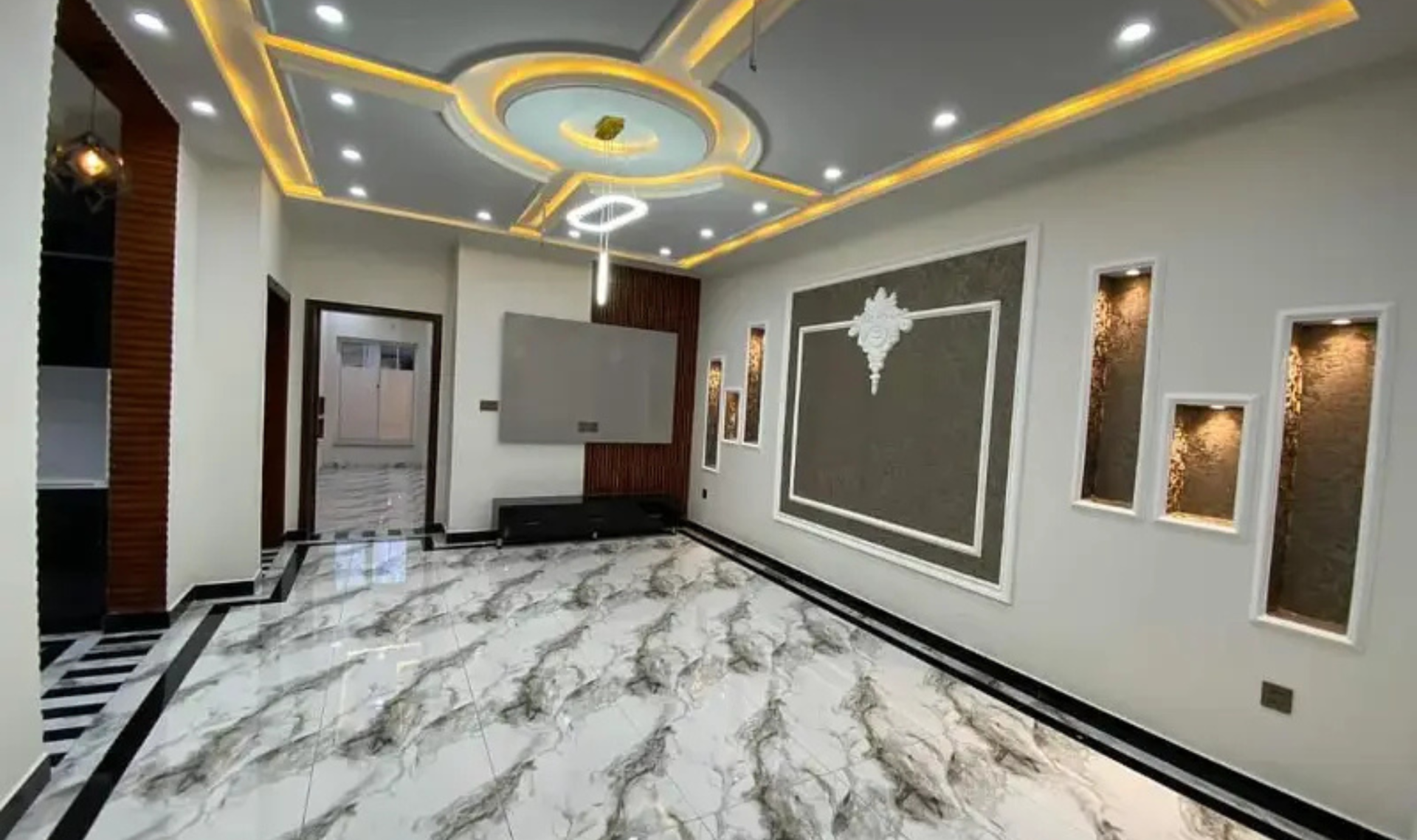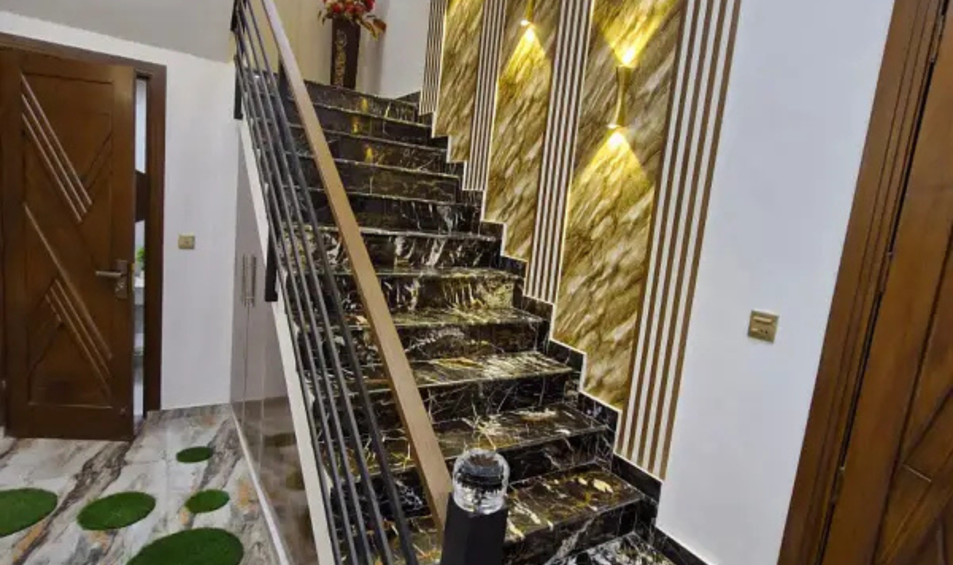 This 5 Marla designer house in Bahria Town Phase 8 Rawalpindi offers a stylish and comfortable living experience. With updated interiors, laminate flooring, and well-maintained landscaping, it combines elegance with functionality.