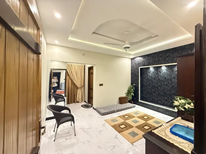 With premium furniture, designer lighting, and modern décor, the entire home reflects sophistication and comfort. The tiled and wooden flooring, false ceiling work, and artistic wall designs add to its charm, while secure car parking ensures convenience. Built with top-quality materials and designed for modern family living, this ready-to-move house provides the perfect blend of style, luxury, and practicality in one of Rawalpindi’s most sought-after locations.